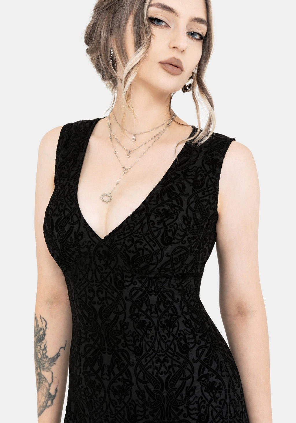 Disrupt Dragon Flocked Mesh Sleeveless Midi Dress