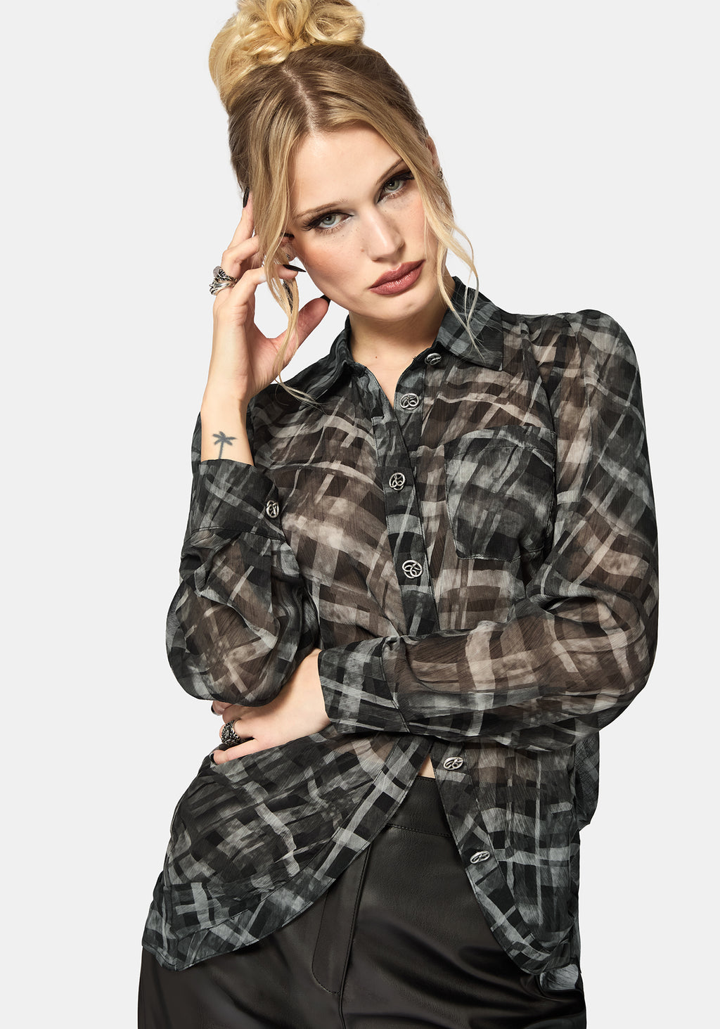 Rhoswen Snake Check Cross Over Long Sleeved Shirt