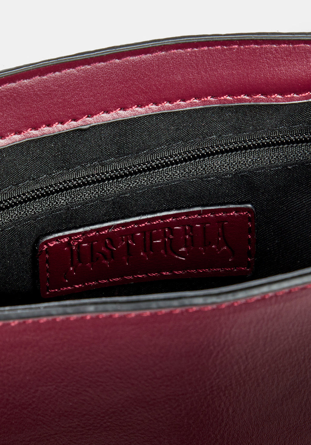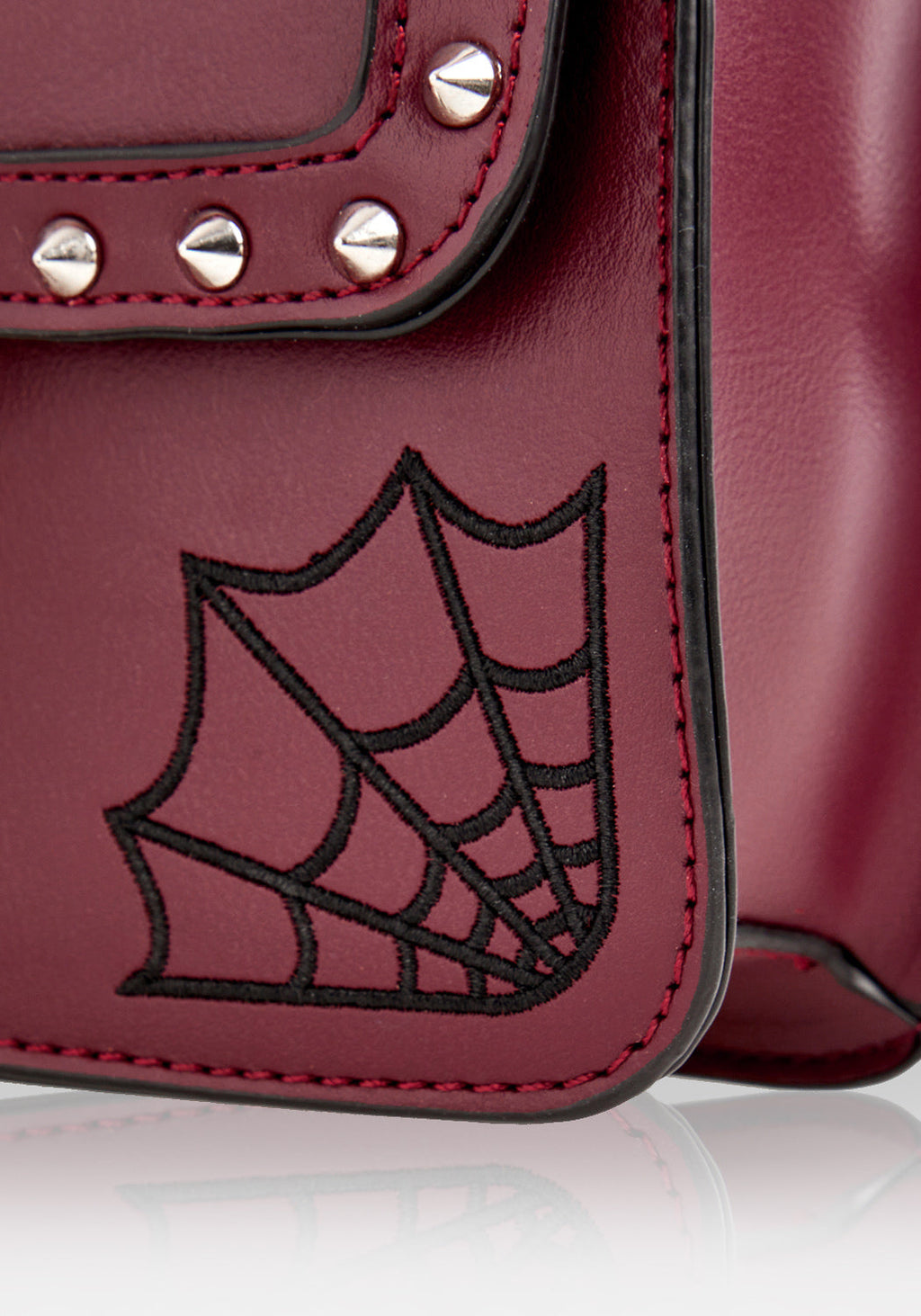 - Deep burgundy sturdy faux leather keeps its boxy shape