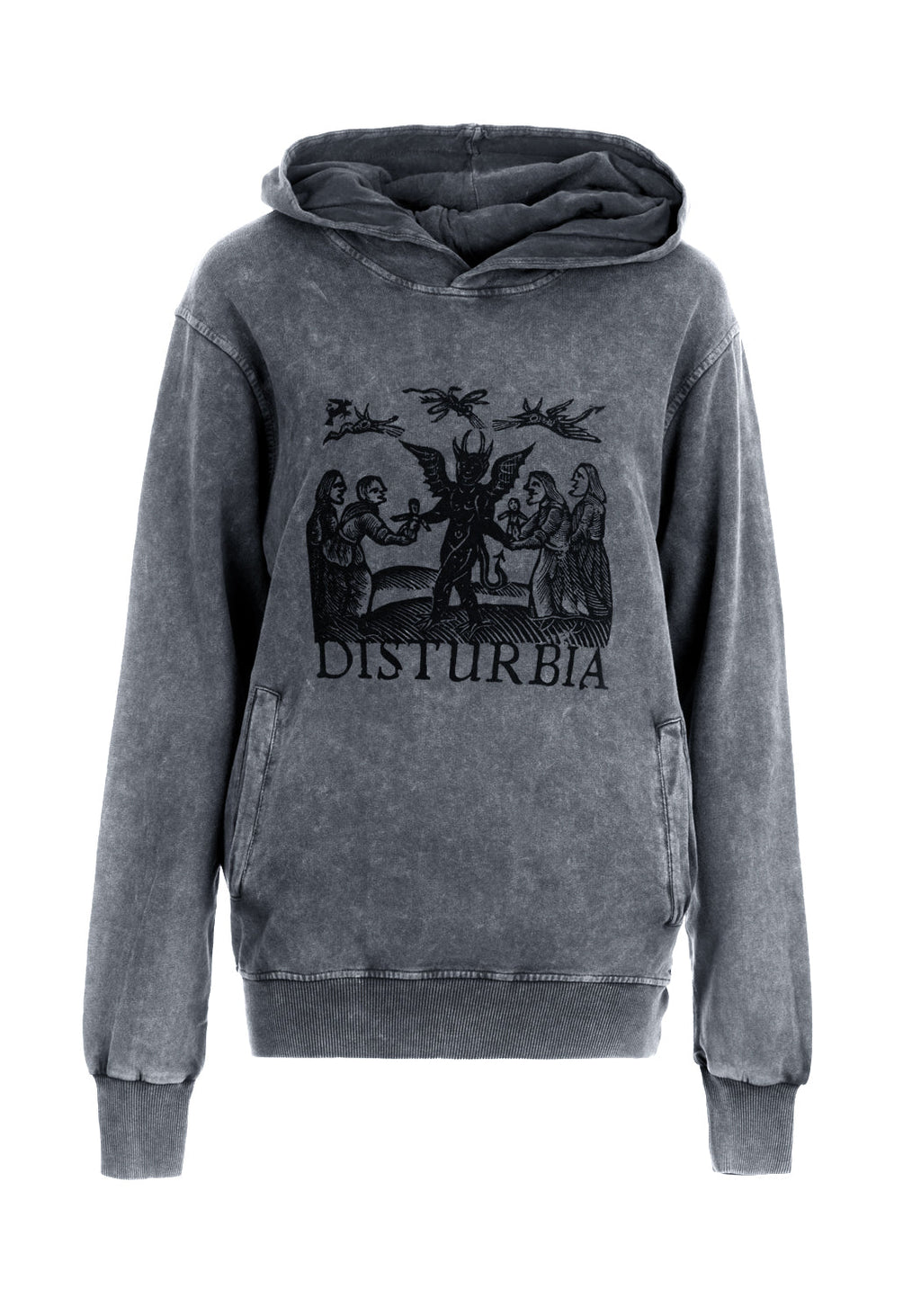Devil Grau Säure Waschen Pullover Kapuzensweatshirt