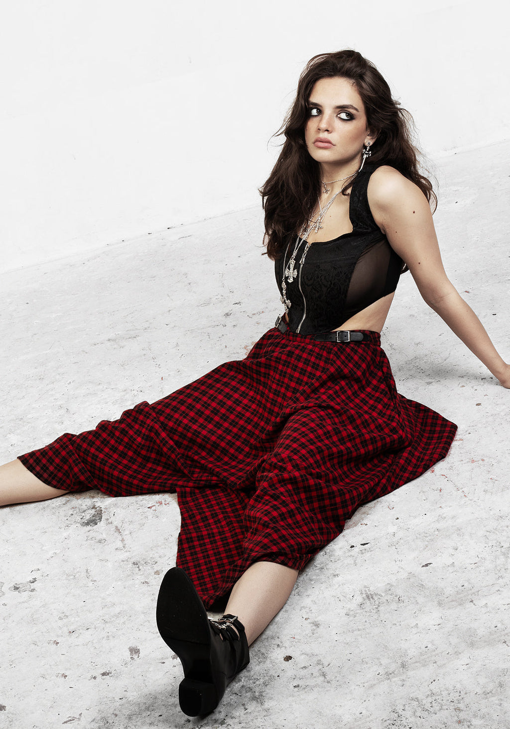 ✦ Concealed back zipper for easy dressing – two faux leather non-functional buckles at hips