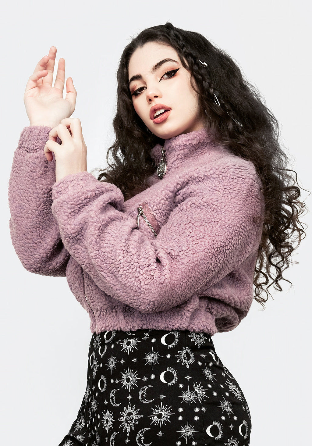 ⭑ Pastel goth fleece crop jacket