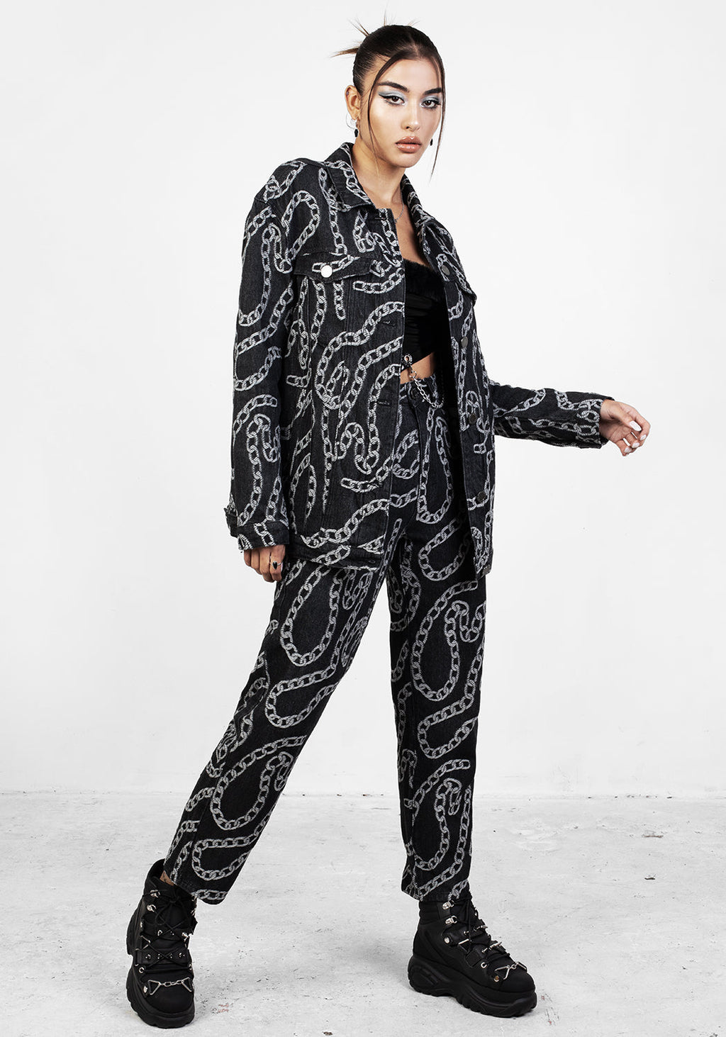 ♚ Soft, lightweight denim with woven chain motif