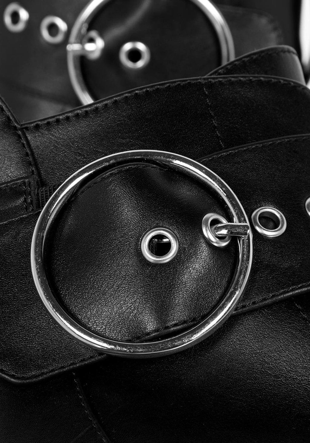 ❦ Smooth false leather contrasts deliciously with silver metal alloy hardware