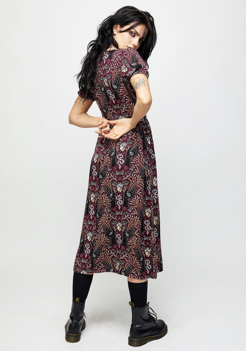 Hemlock Knopf Detail Puffärmel Ärmel Midi Kleid