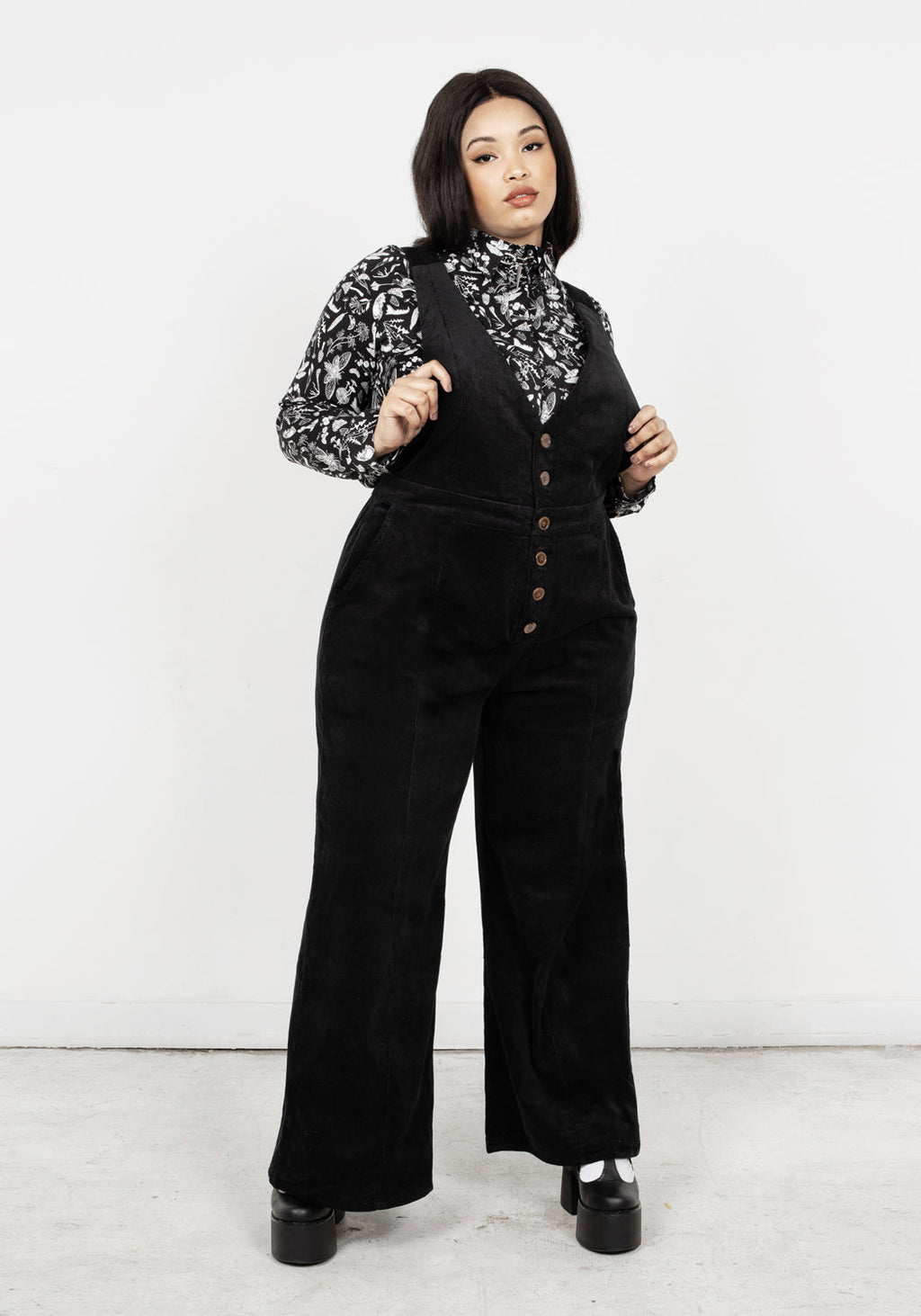 ✦ Flared button-up corduroy dungarees