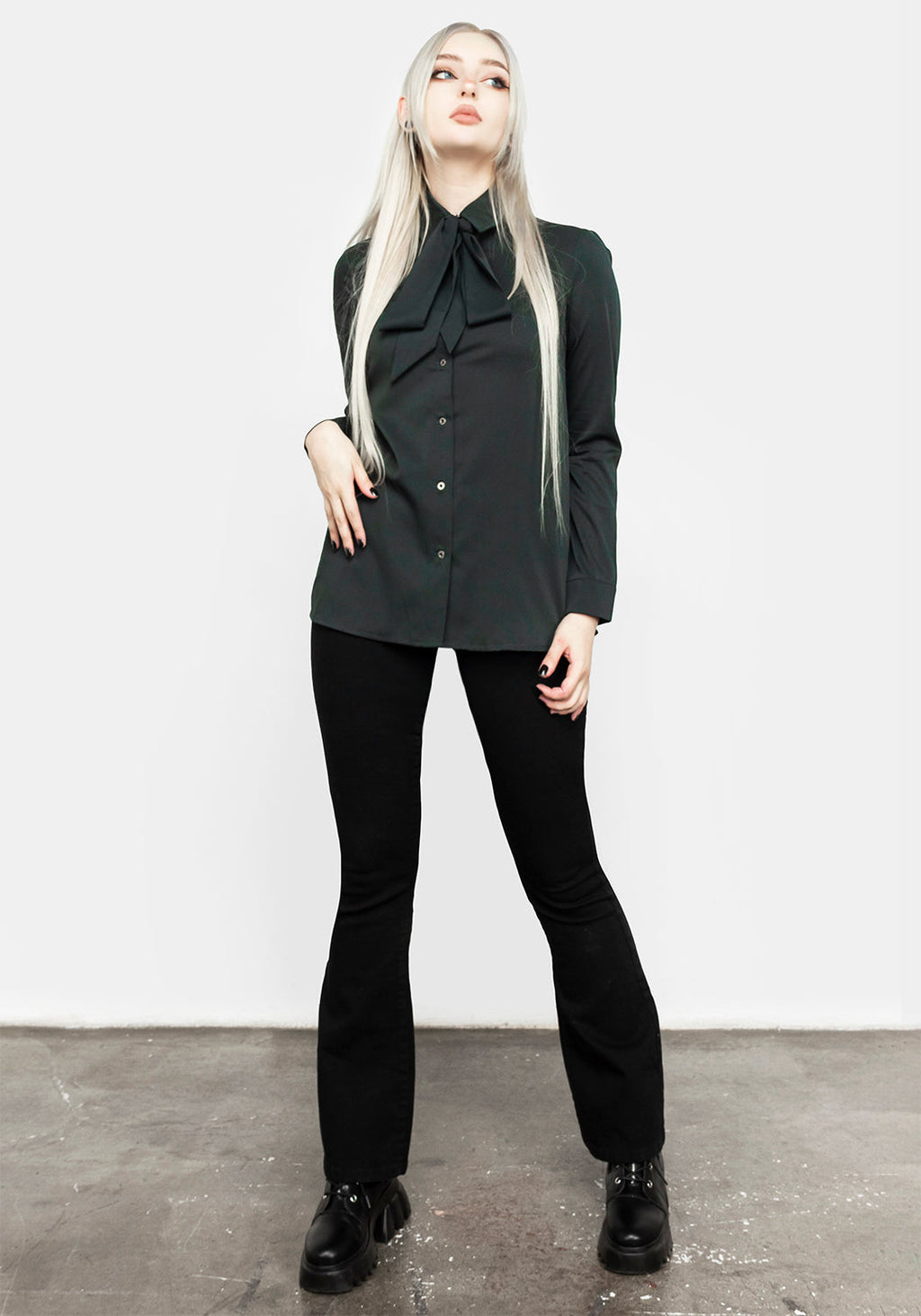 ❦ Forest green pussybow shirt