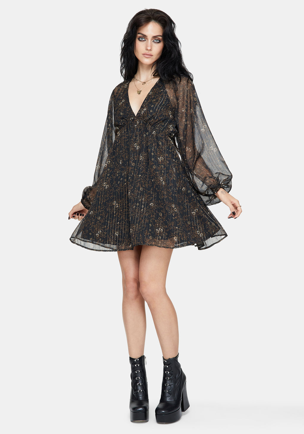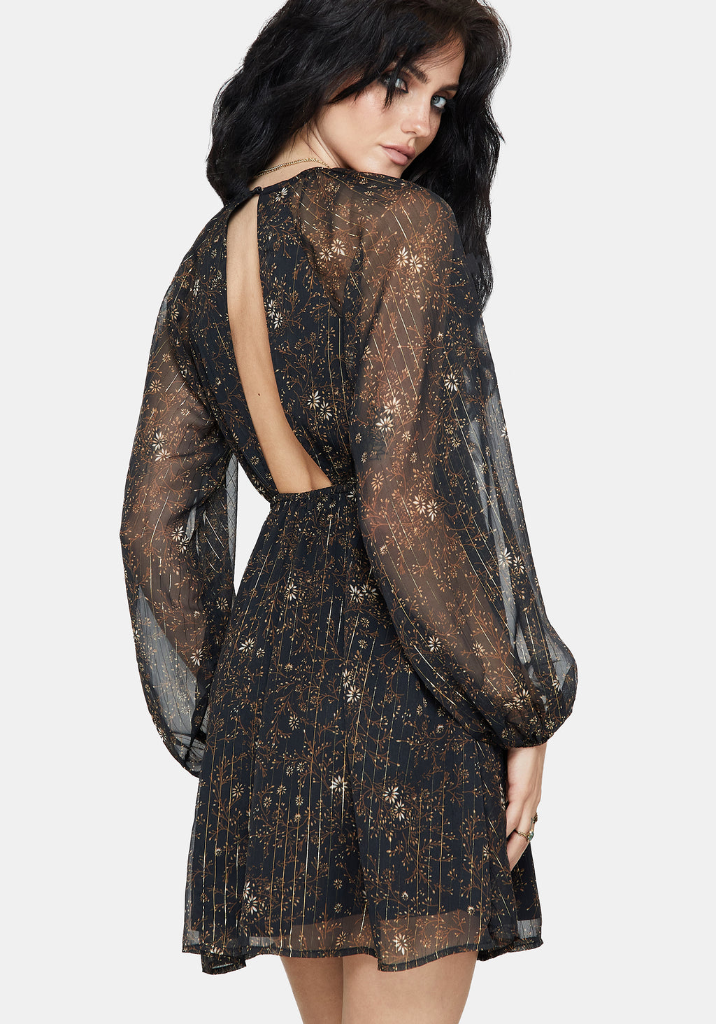 Astralis Floral Stripe Puff Sleeve Mini Dress