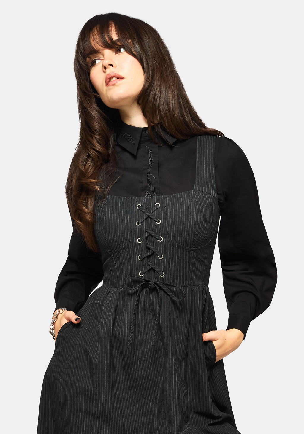 - Lace-Up Corset Detailing and Boning on Bodice