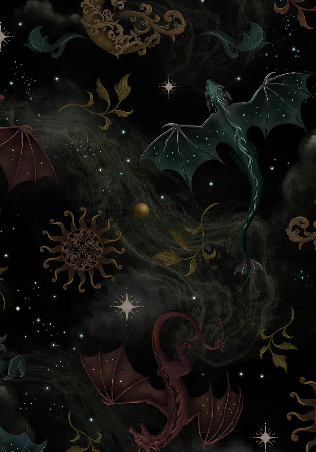 • Black Dragon & Celestial All-Over Print Mini Shirt Dress