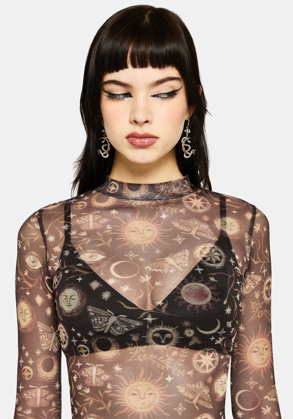Rhea Long Sleeve Printed Mesh Top