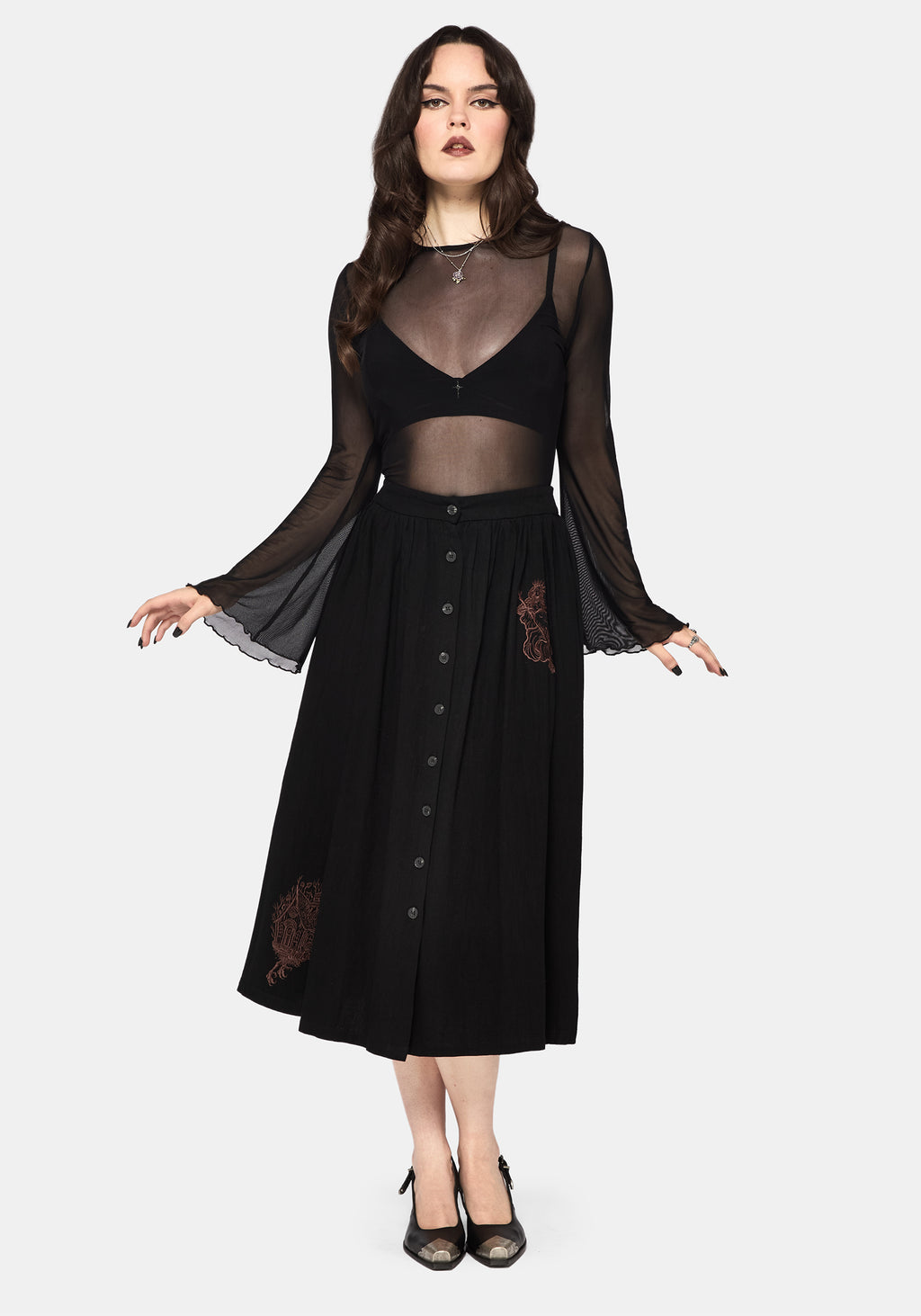 Hexborn Baba Yaga Embroidered Midi Skirt