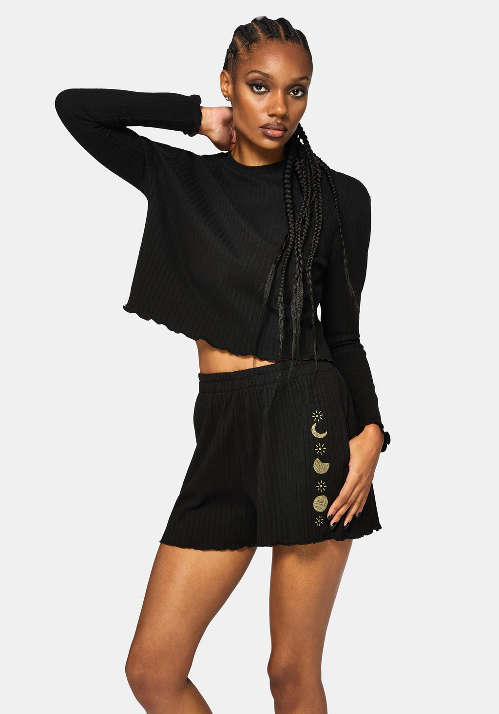 Griffinfly Embroidered Lettuce Hem Pyjama Short