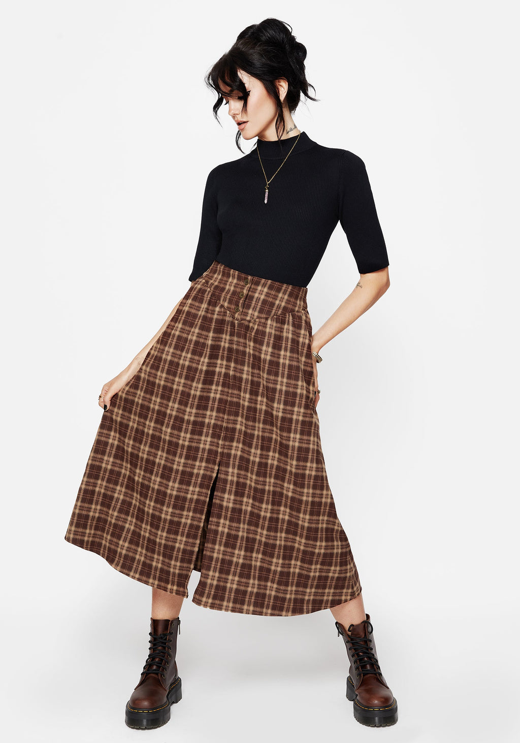 • Brown Check Midi Skirt