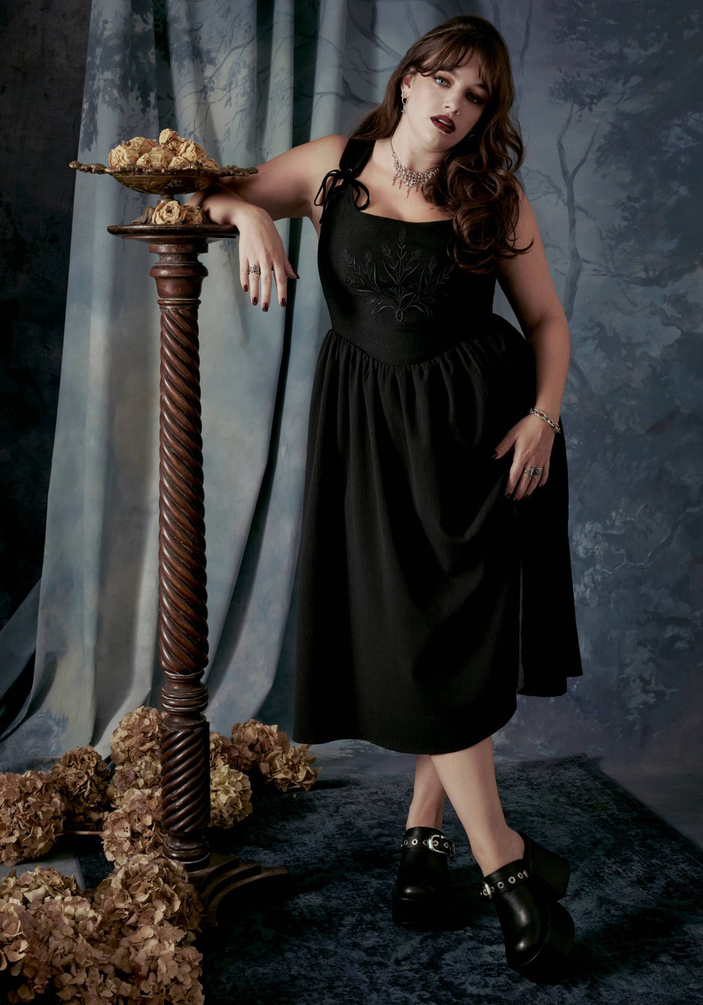 - Black Floral Embroidered Corset Bodice Midi Dress