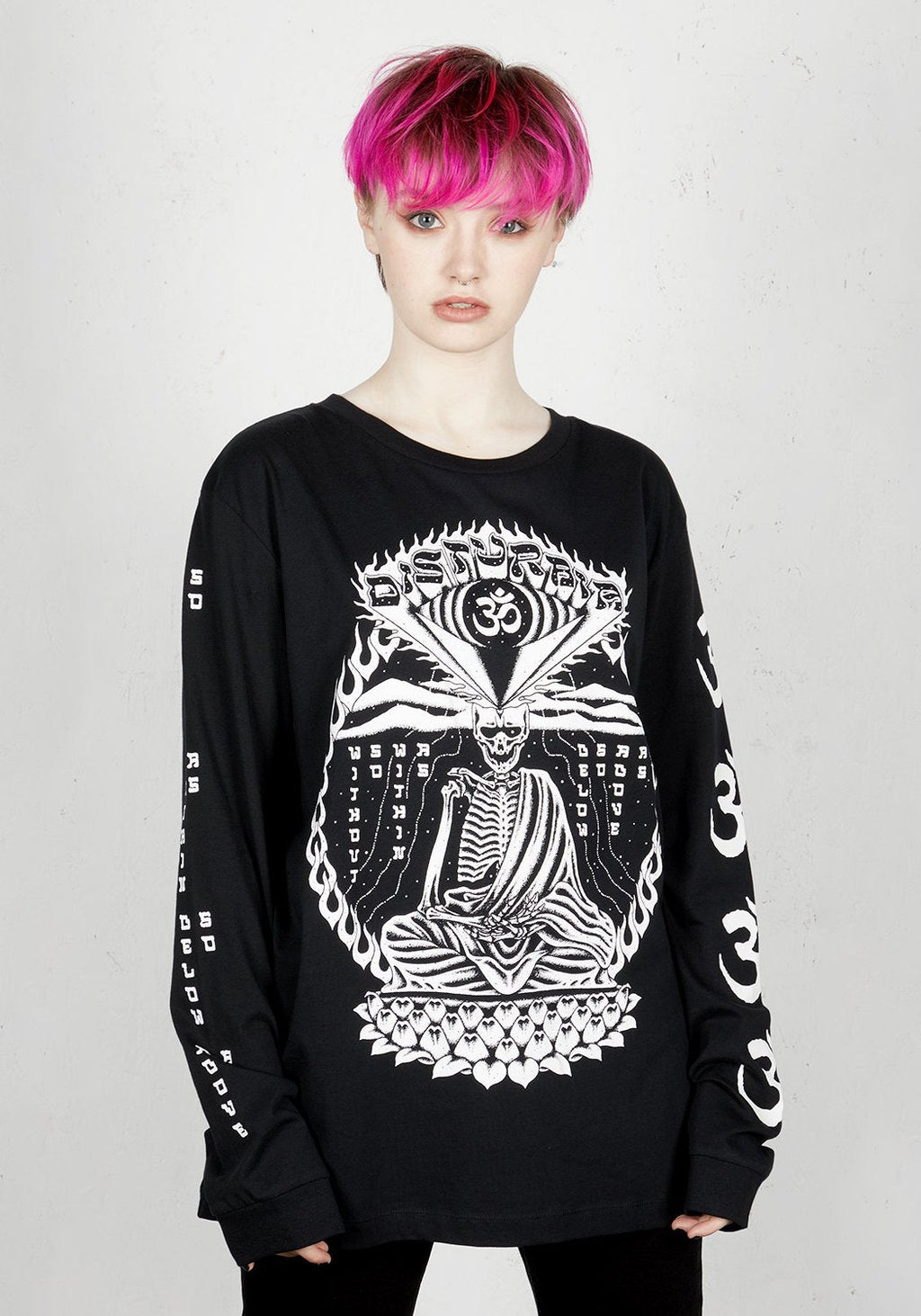 ॐ Large monk design on front with Disturbia logo in third eye