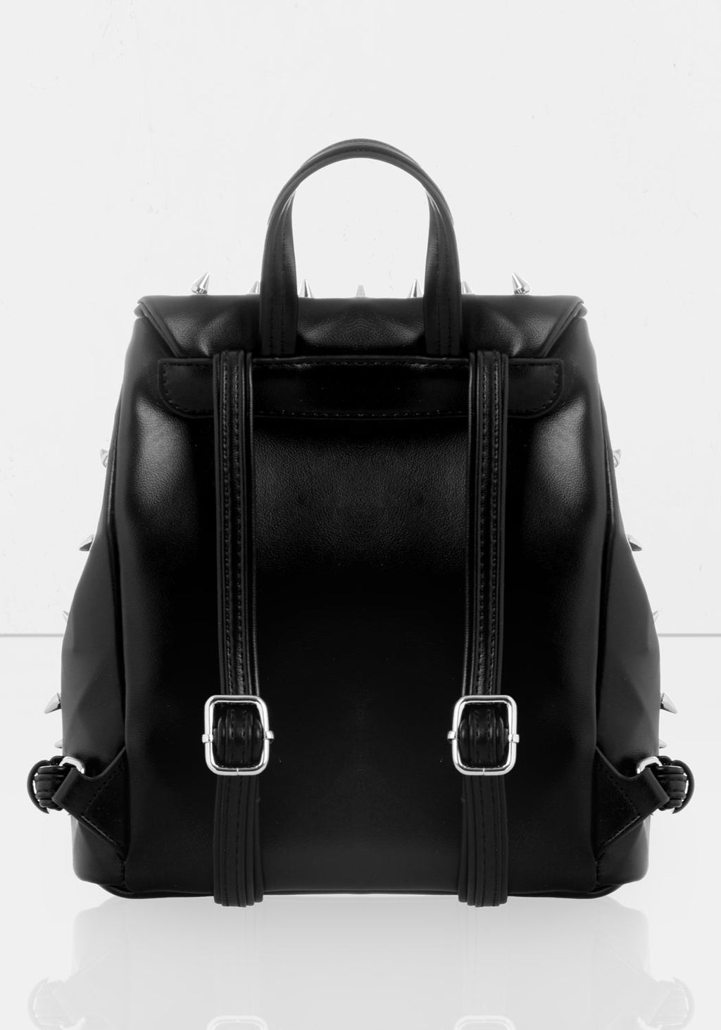 - Drawstring opening covered by front flap, fastened with a magnetic closure