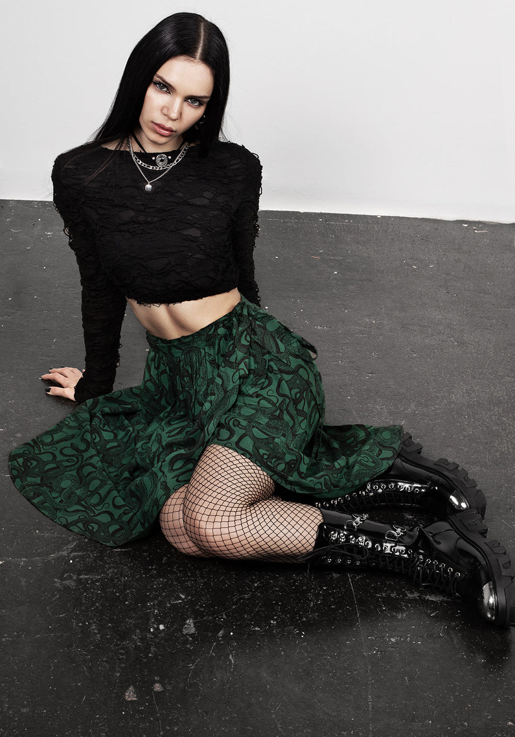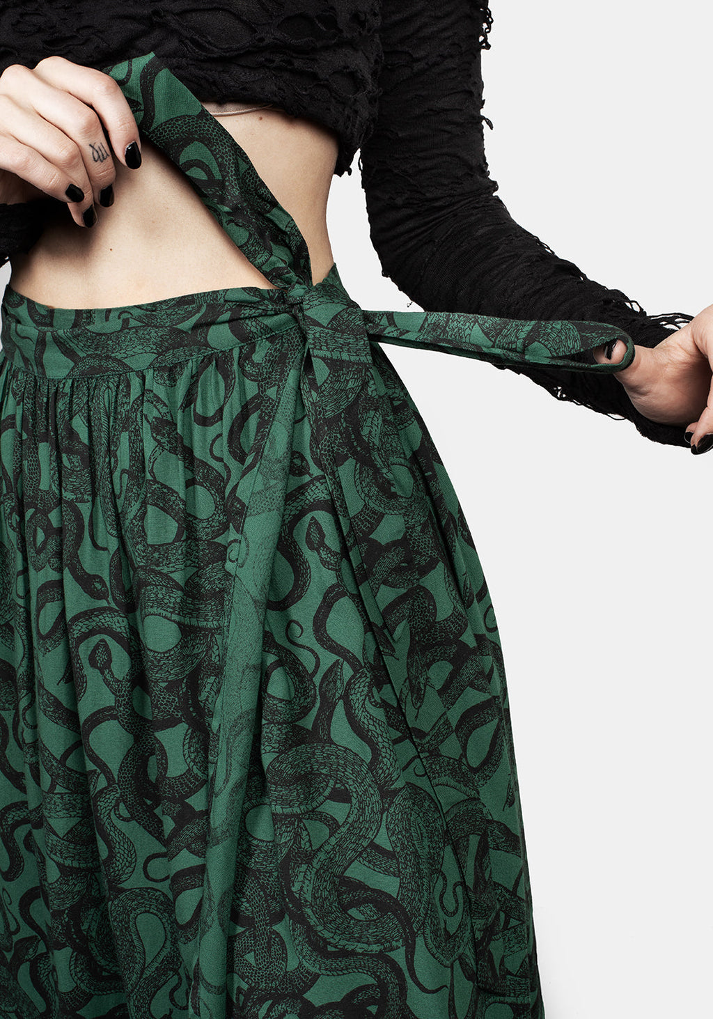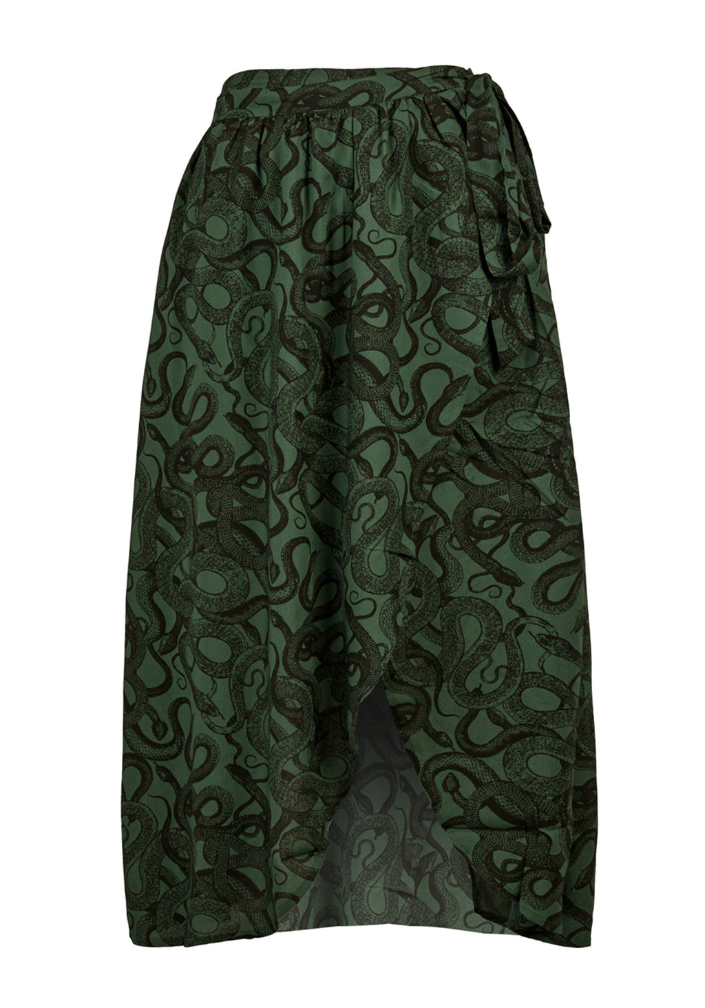 - Faux wrap feature: mock under wrap secured by concealed side zip, overlaid with front wrap panel & fastened through belt loop with self-fabric tie