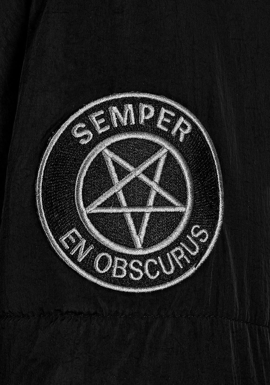 ✫ Graphic sleeve patch reads Semper En Obscurus