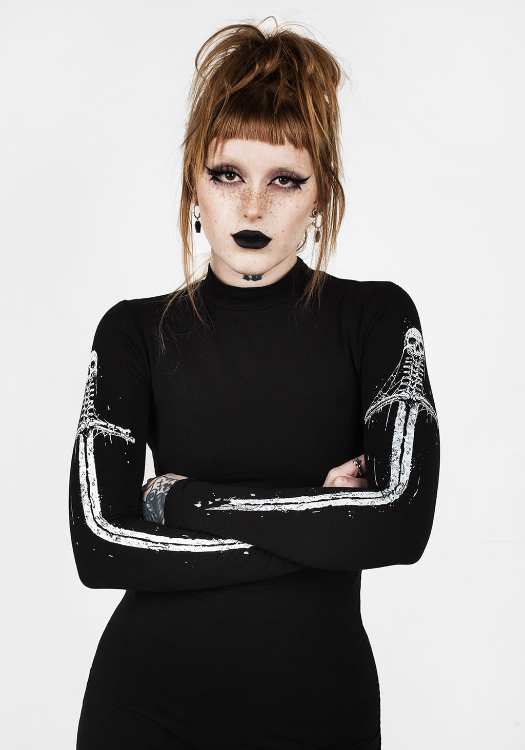 - Long skin-tight sleeves and mock turtleneck = a styling no-brainer