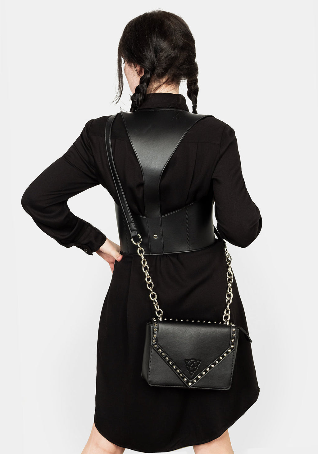 ▶ Adorned with silver cone studs & debossed triquetra artwork