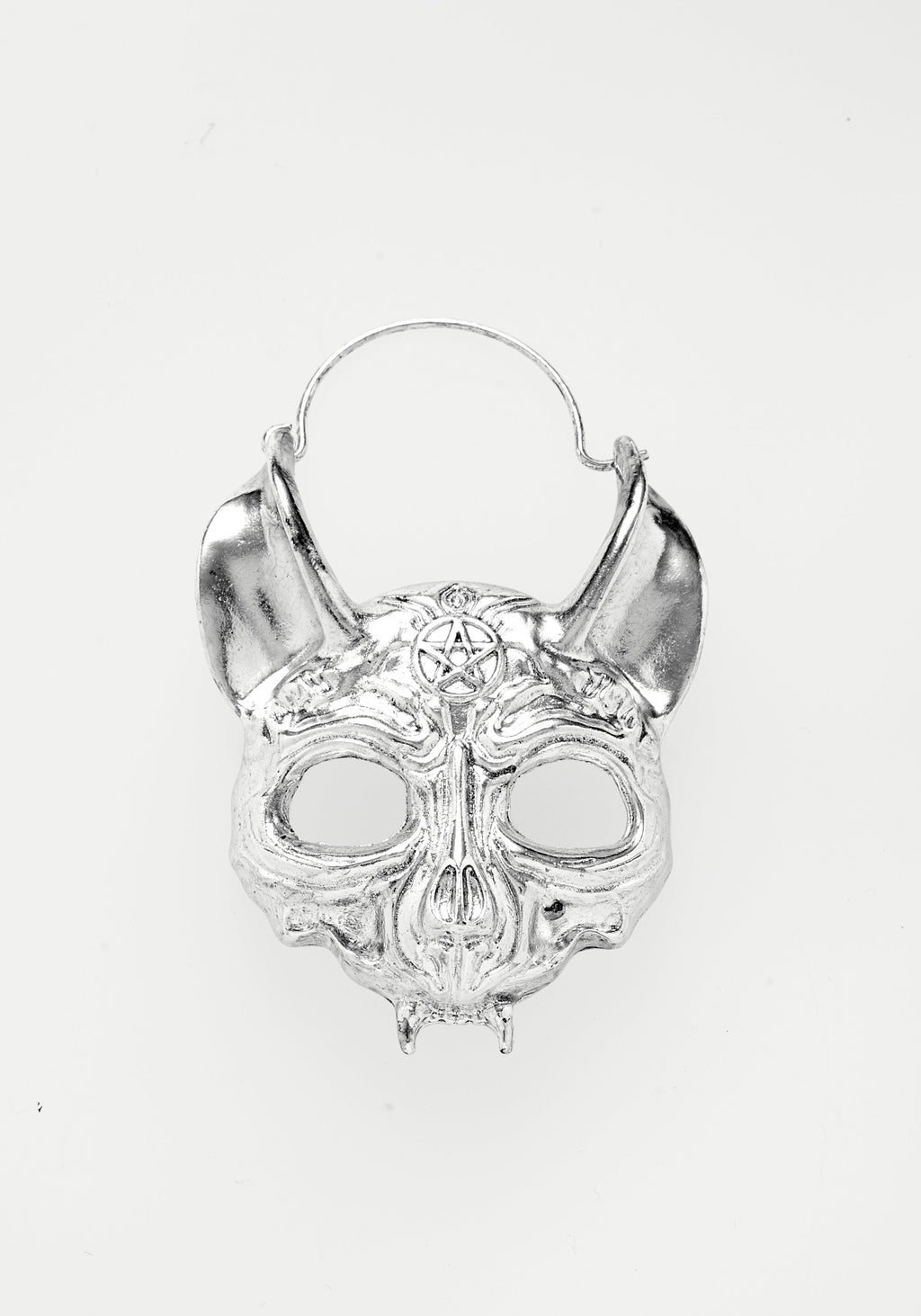 There is a tale from Japanese mythology that speaks of a shapeshifting demonic entity which at first looks like a harmless domestic cat, but can take the form of a beloved to trick unsuspecting victims to slowly drain their lifeforce to leave behind an empty husk. Pretty metal, right? These moulded vampiric cat head earrings (probably) don’t have the same energy-sucking capabilities, but they’ll still bewitch passers-by with their unnerving empty stare, sharpened fangs, and etched pentacle symbol. Hook them through your lobes with their pin catch posts anytime you need statement earrings, and take what you want.