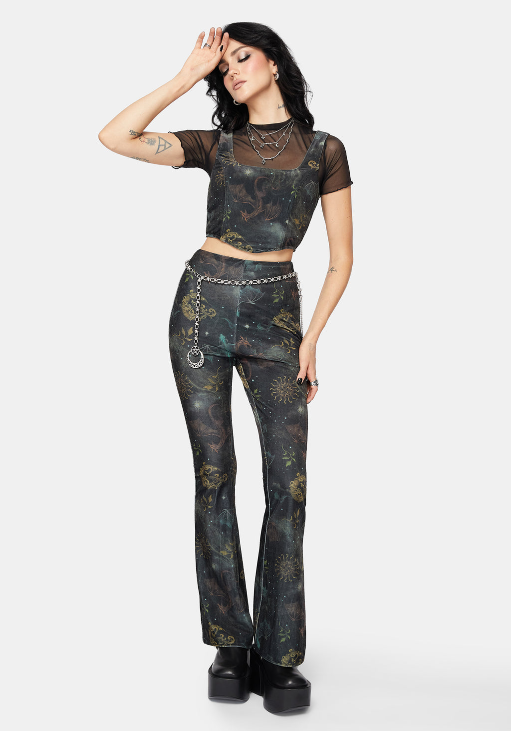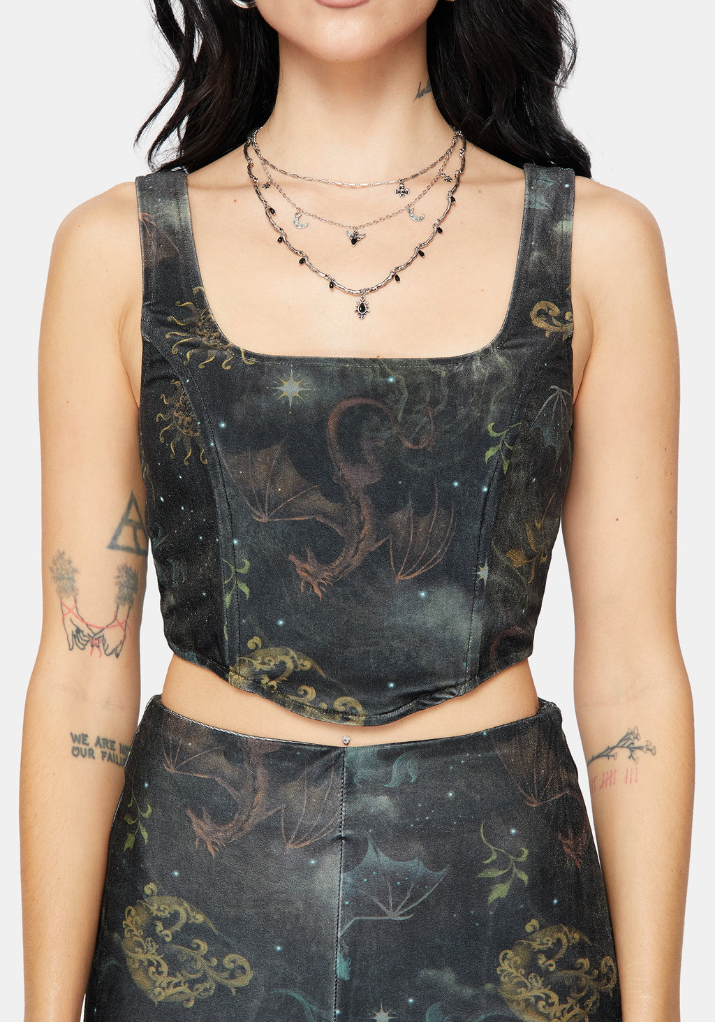 • Green Dragon & Celestial All-Over Print Corset