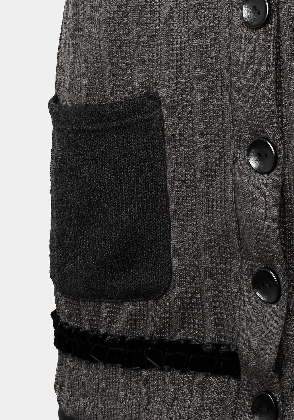 ✦ Grey ribbed fabric with contrasting black panels for a patchwork effect