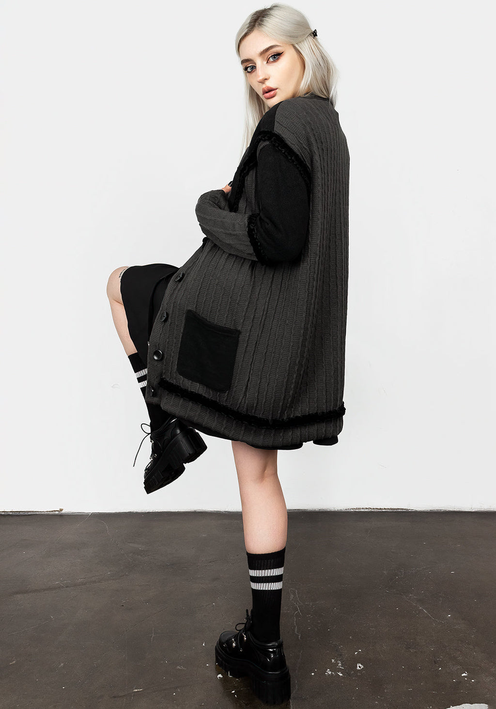 ✦ Grey and black oversized knitted cardigan