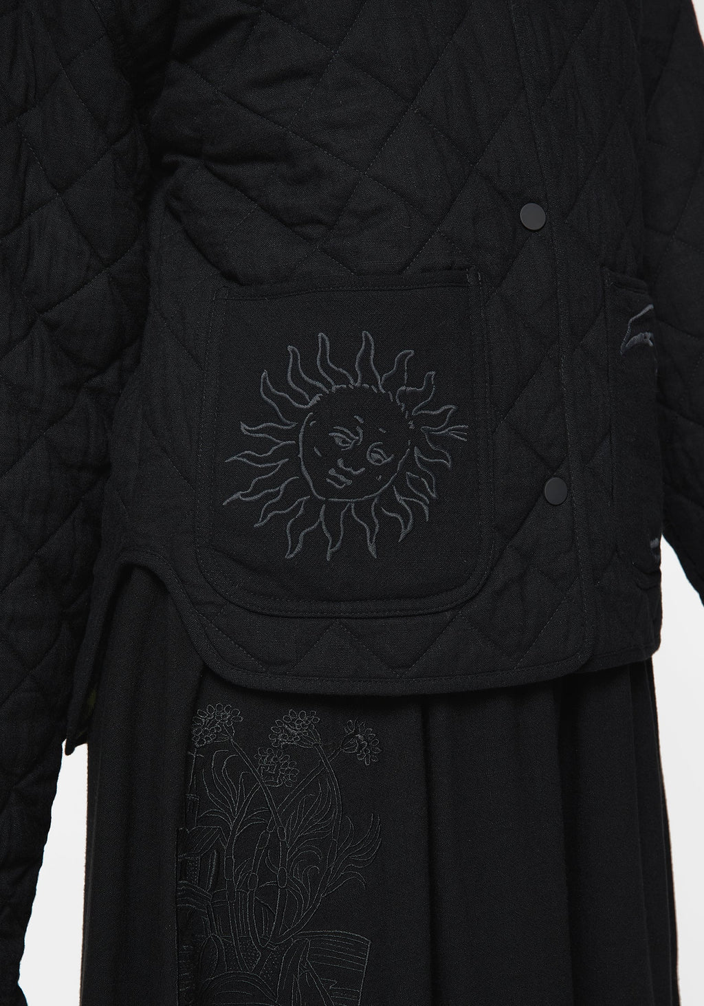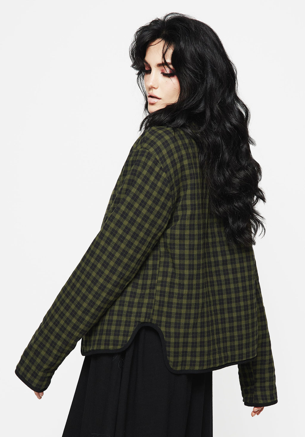 - Black quilted fabric on one side, black & green gingham on the other (wear either way to fit your mood)