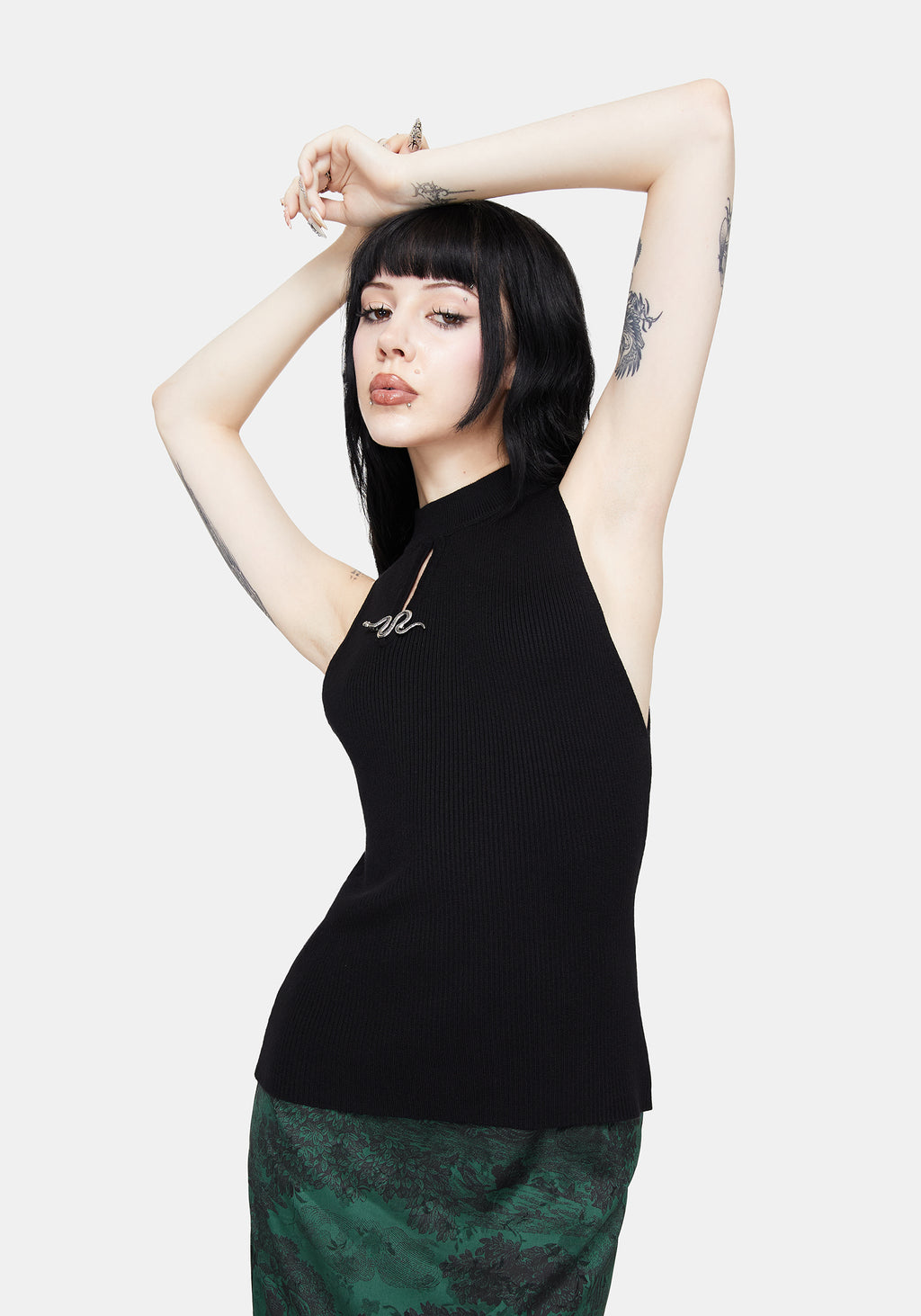 Apollo Snake Brooch Cut Out Detail Sleeveless Knit Top