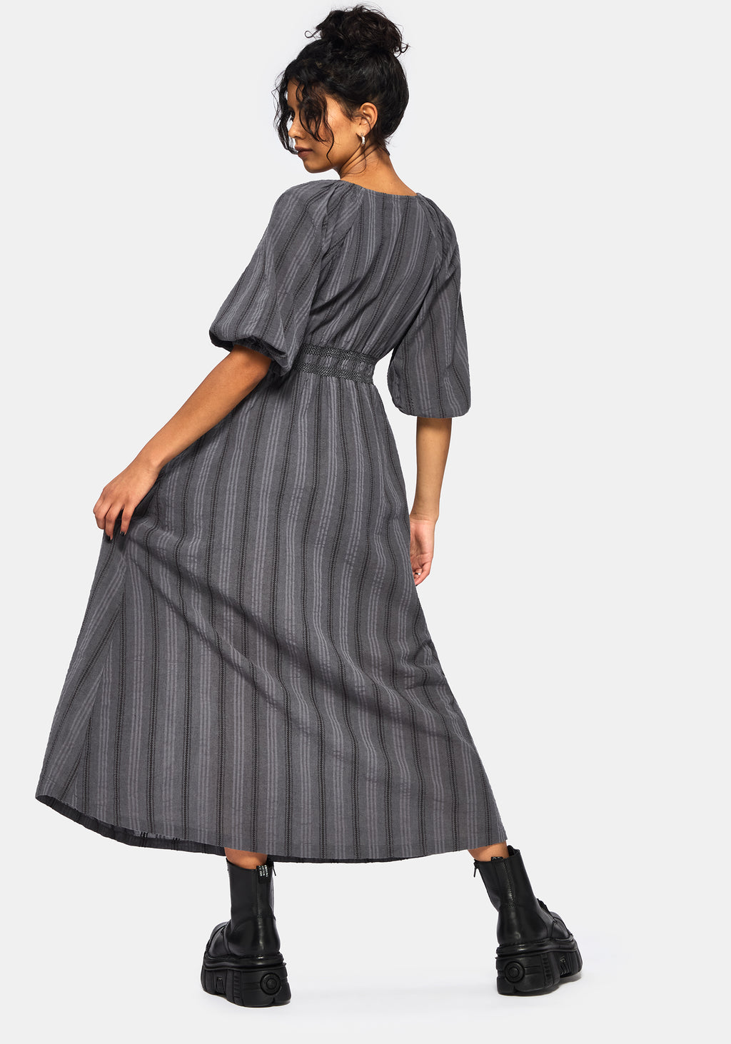 Grove Cotton Stripe Long Sleeve Shirred Tie Back Midaxi Dress