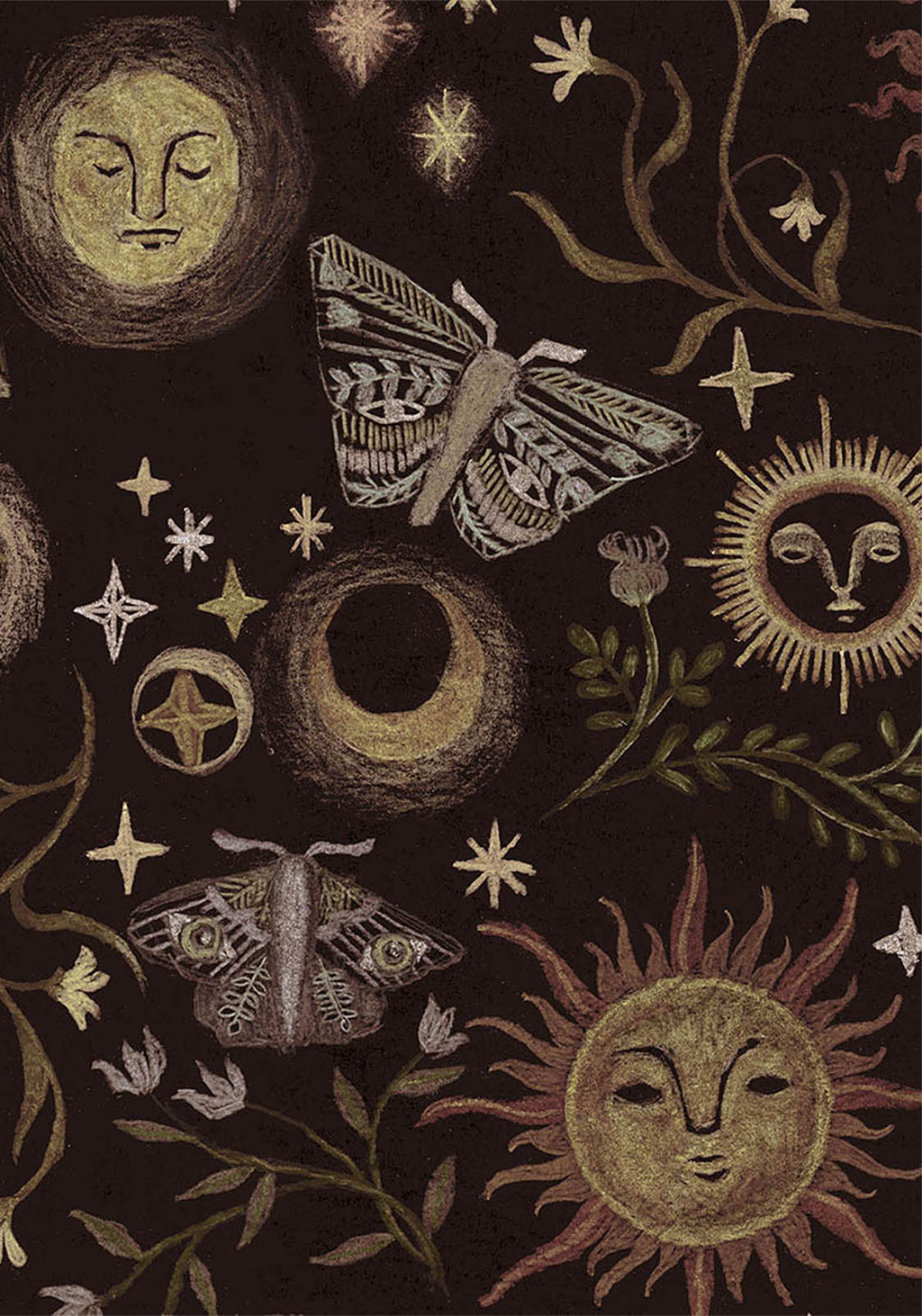 Rhea Cotton Blend Moth and Moon Print Midaxi Skirt