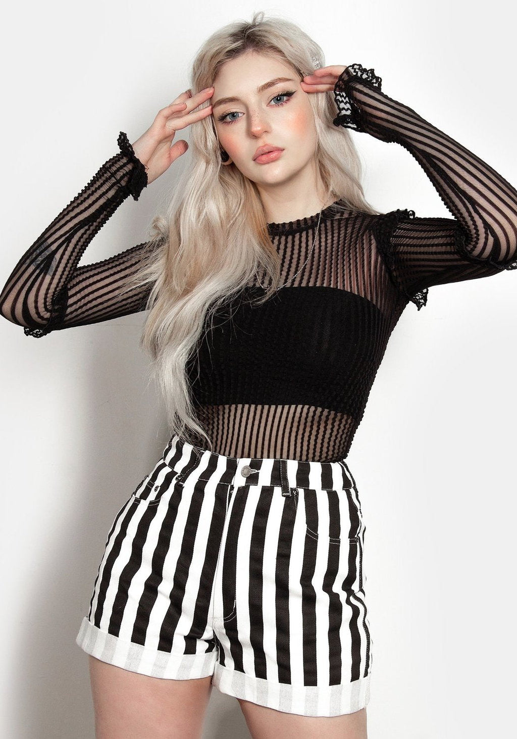 》Belt loops in matching black-and-white denim