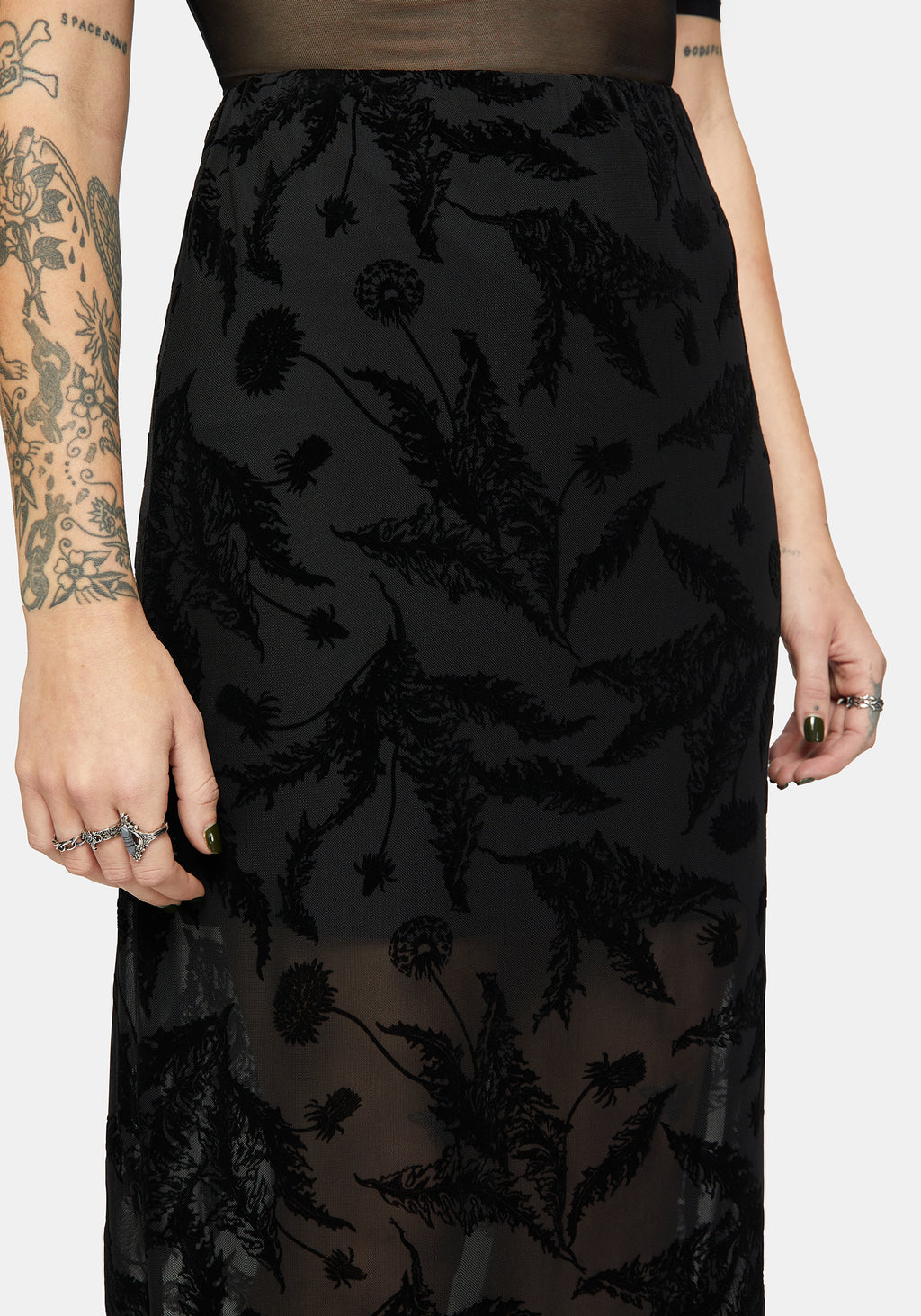 • Black Mesh Midi Skirt