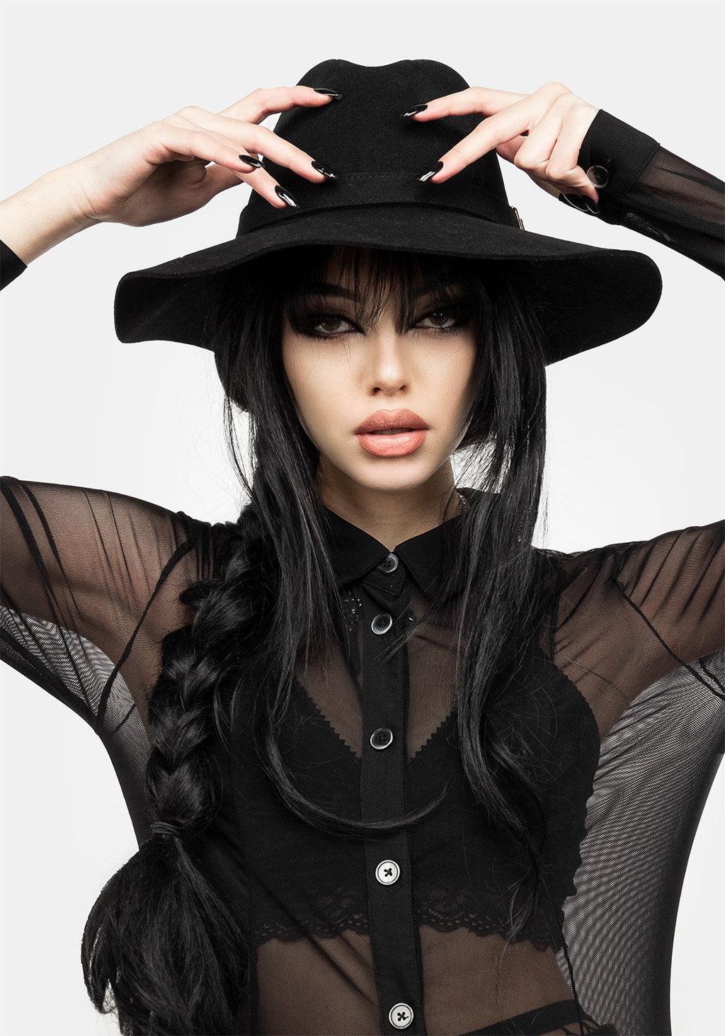 ❦ Black mesh maxi shirt dress with front splits