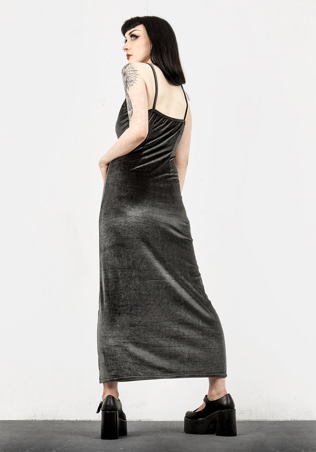 ❦ Grey-blue velvet midi slip dress