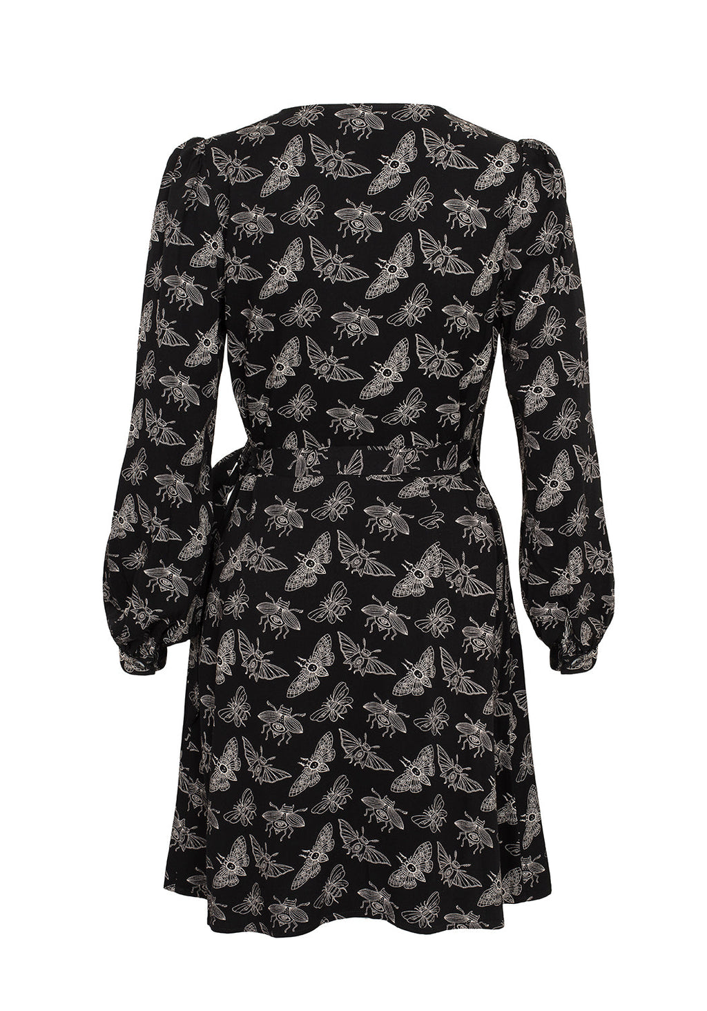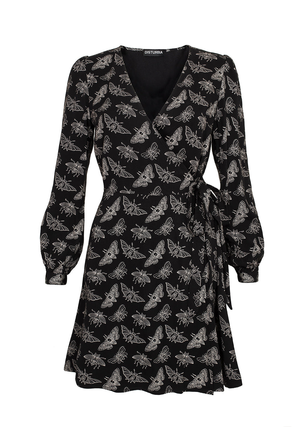 ❦ Black wrap mini moth dress