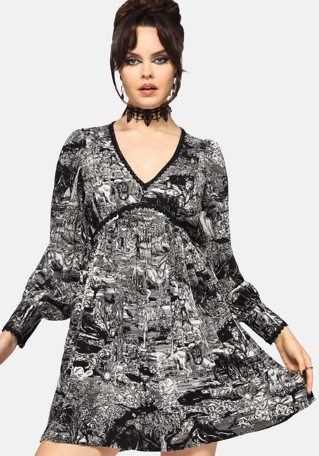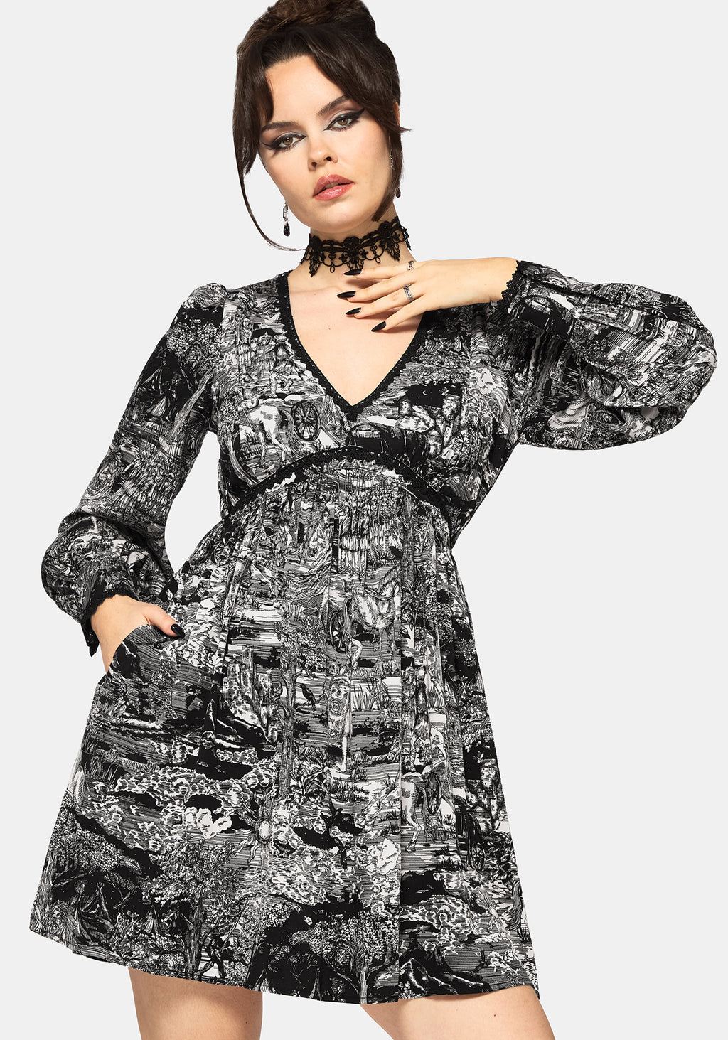 • Black and White Printed Mini Smock Dress