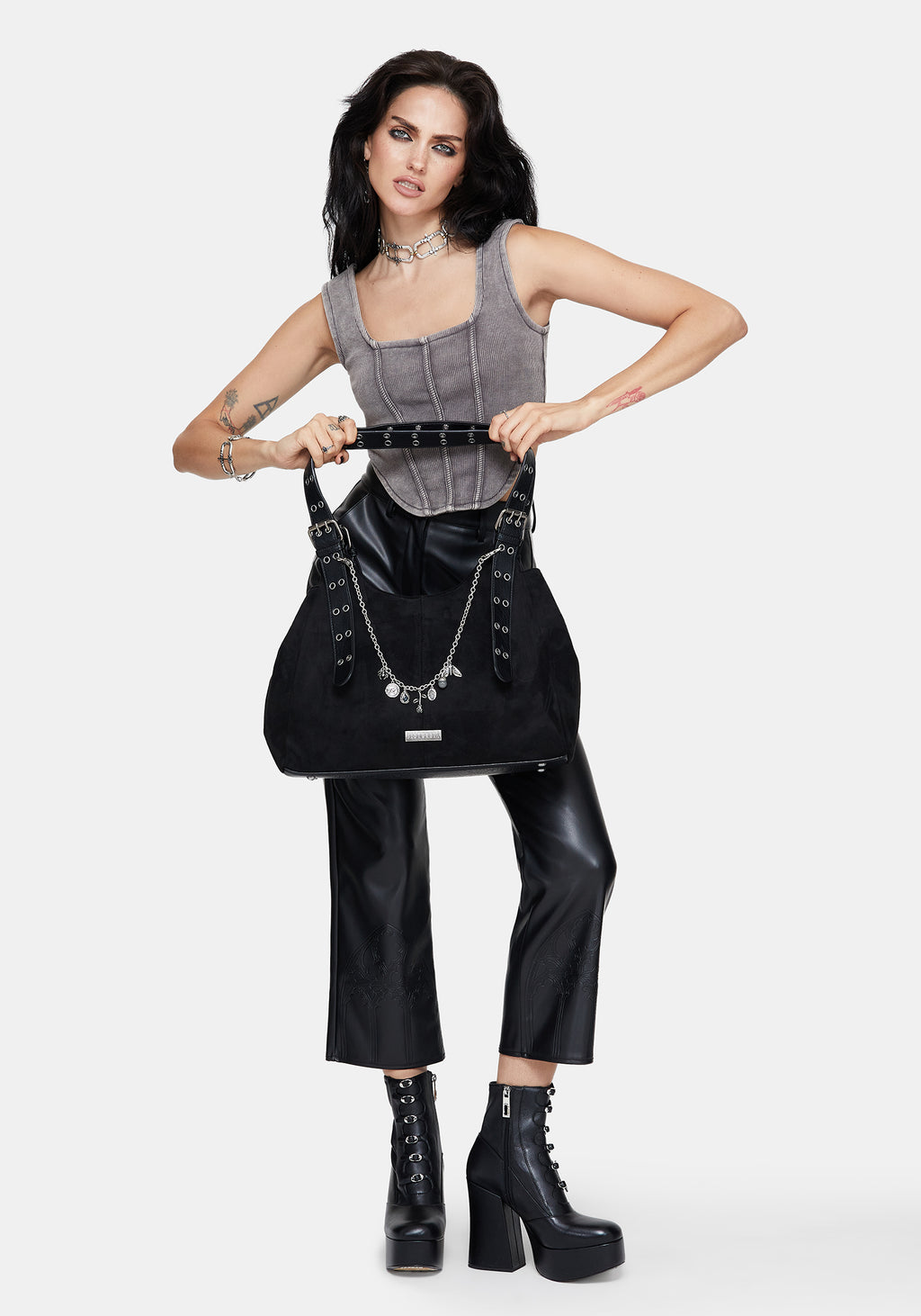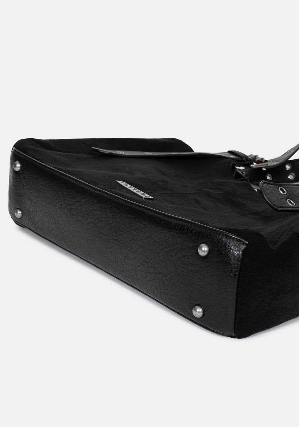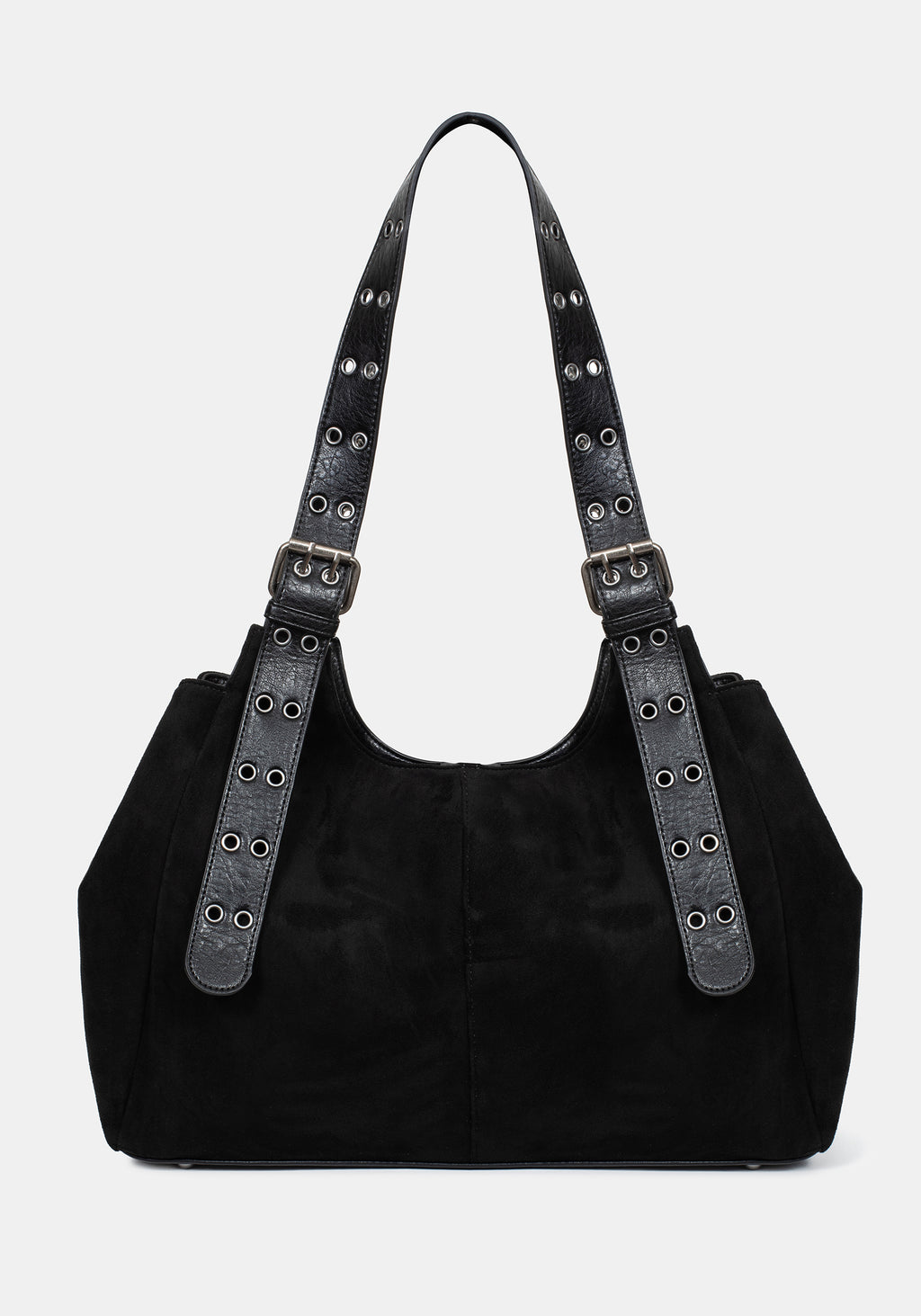 • Black Faux Suede Belted Shoulder Bag