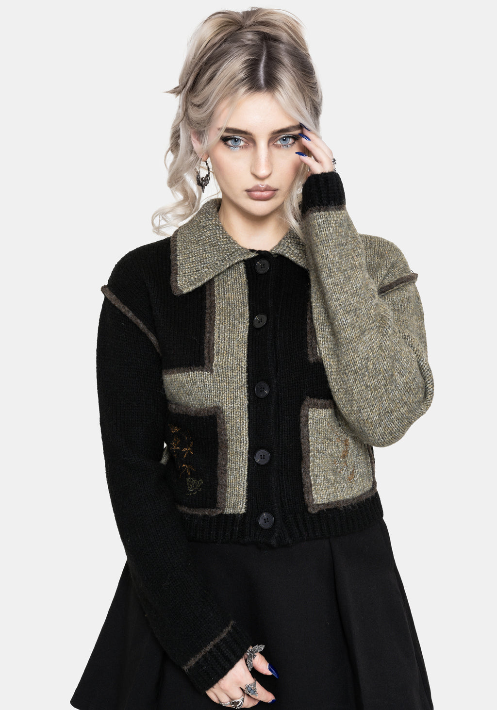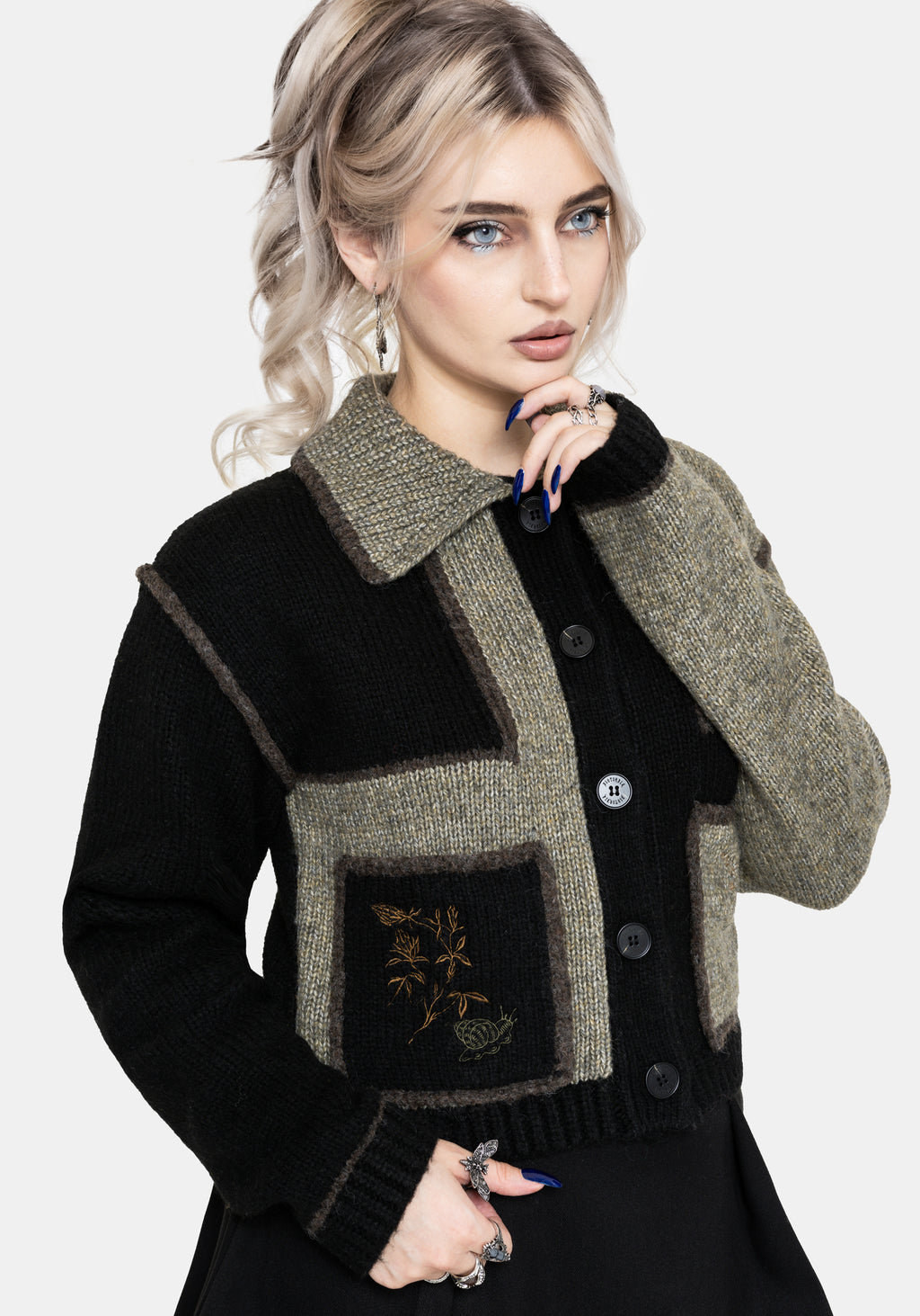 Polly Collared Patch Embroidered Knit Cardigan
