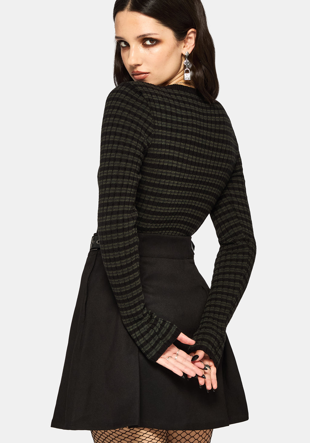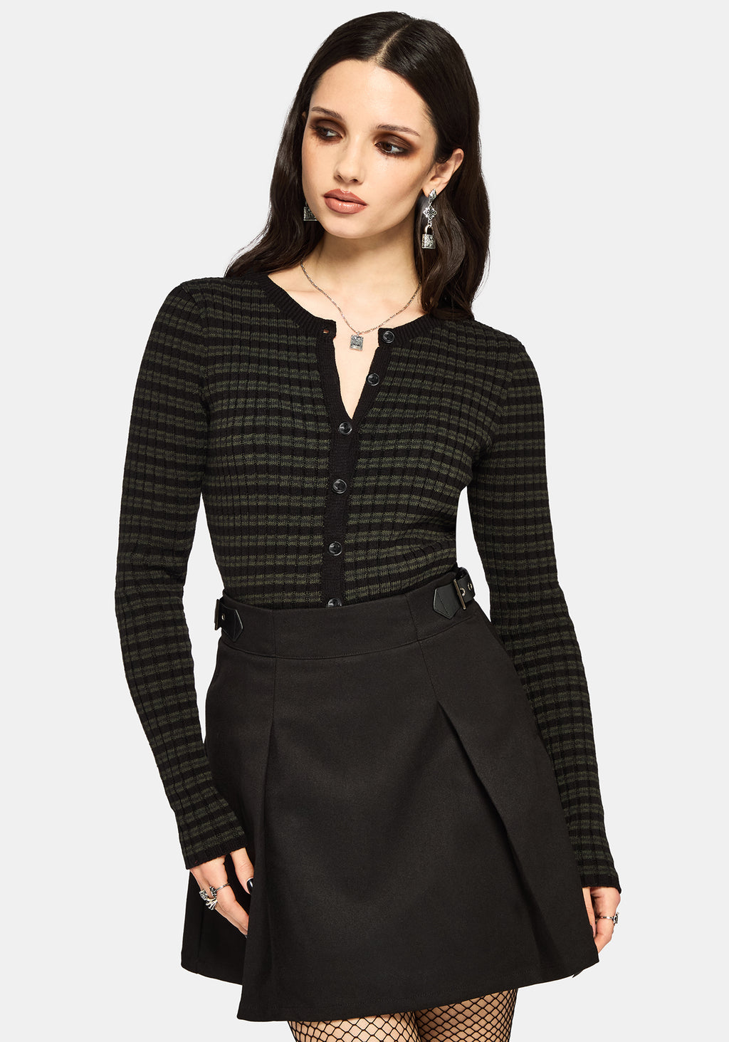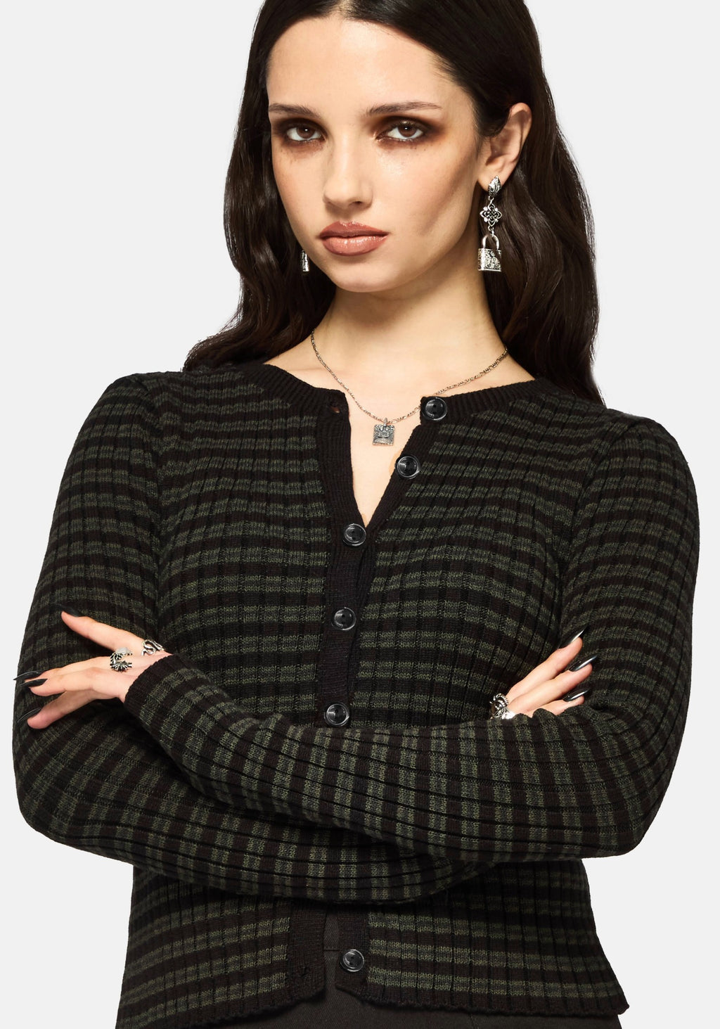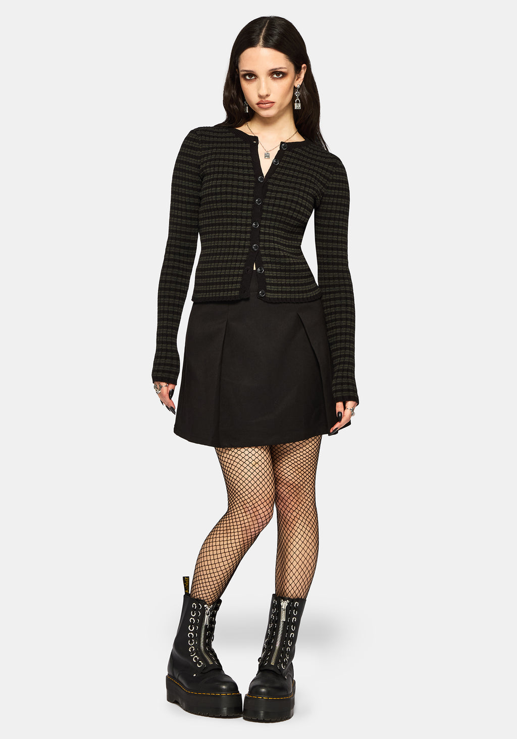 • Green and Black Stripe Cardigan