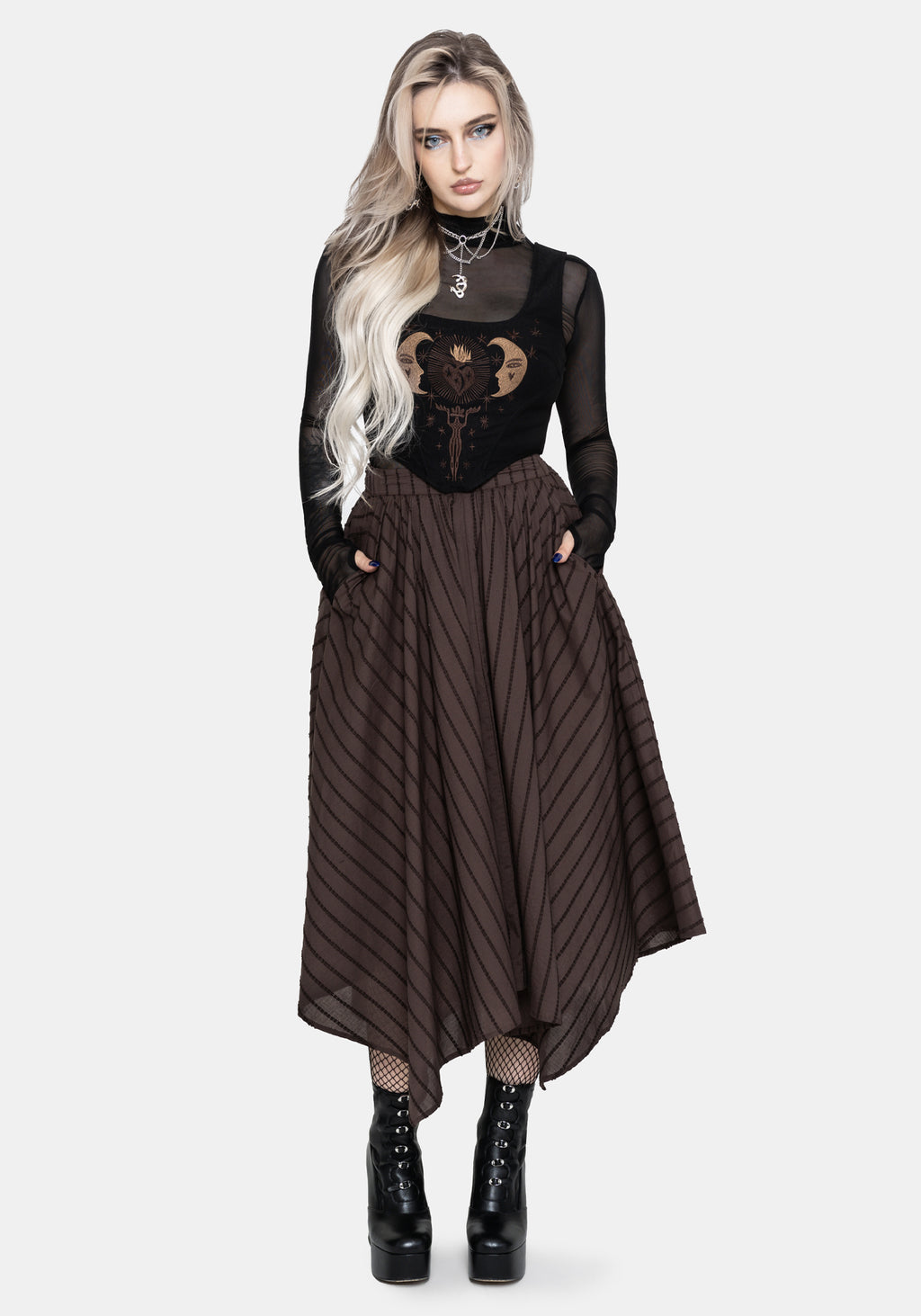 Blythe Handkerchief Hem Midaxi Skirt - Brown
