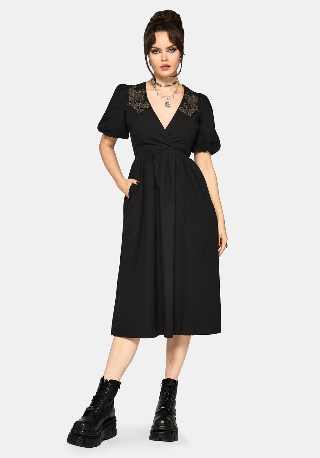 • Black Embroidered Midi Dress