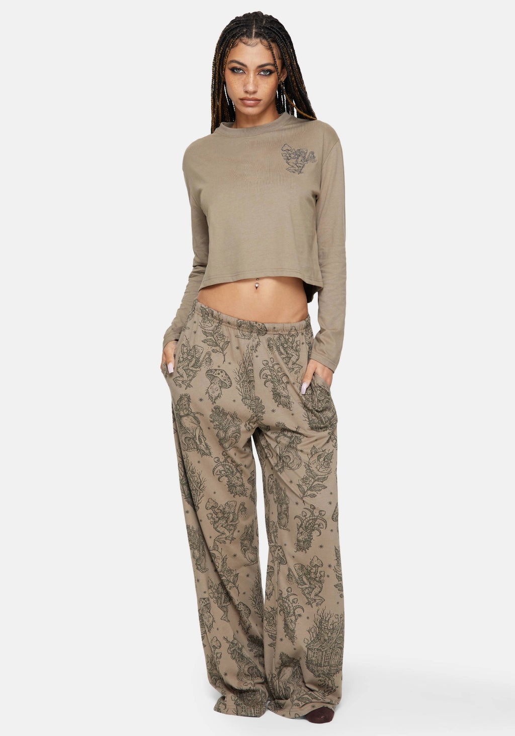 Hexborn Baba Yaga Bestickt Lang Ärmel Pyjama T-Shirt