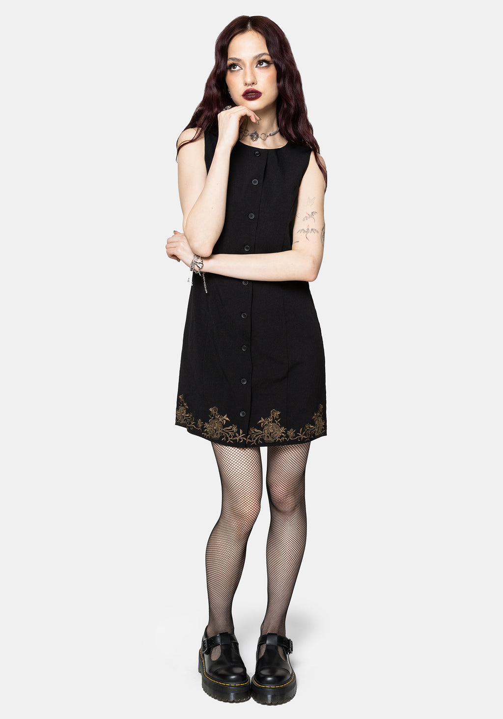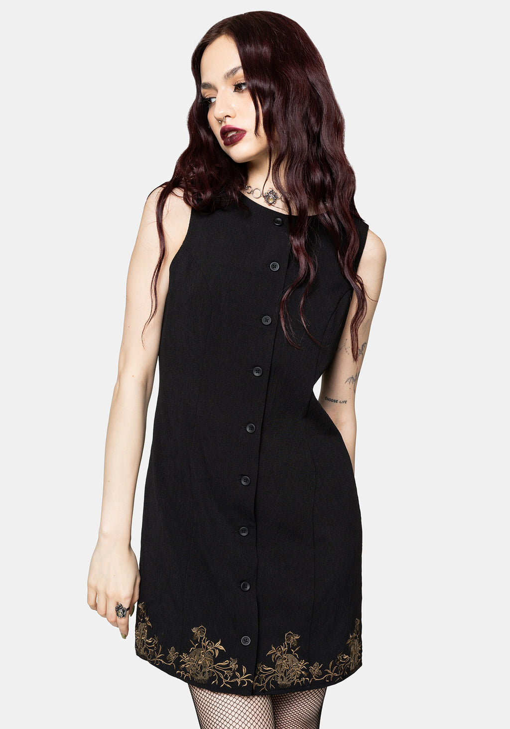 Ismay Vine Bestickt Saum Knopf Hoch Mini Kleid