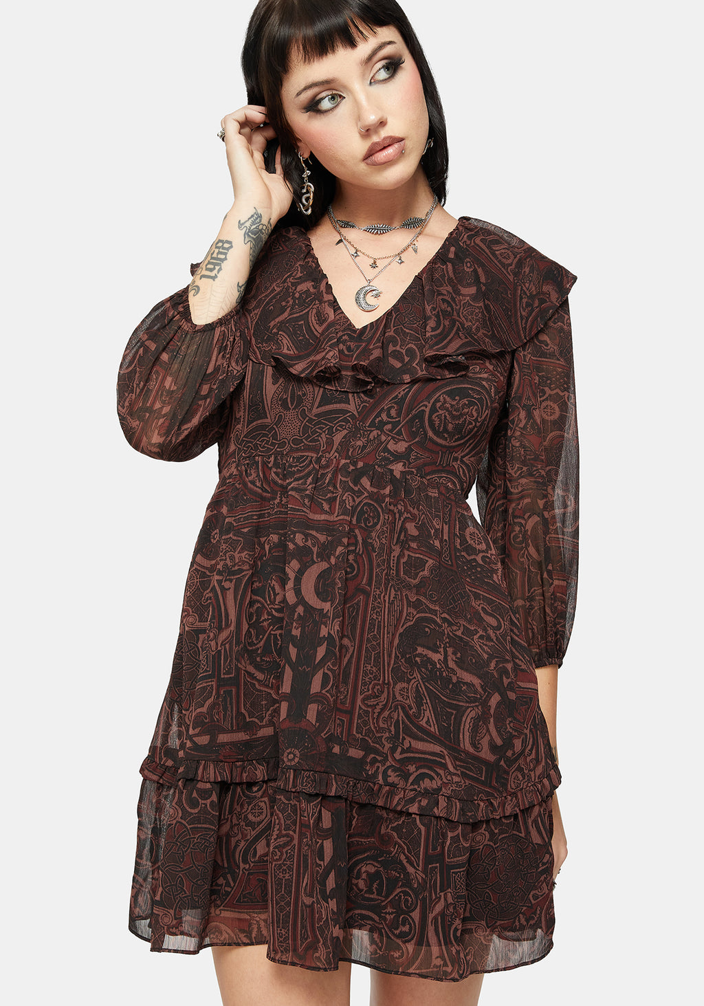 Kells Bedruckt Krawatte Rücken Rüsche Mini Kleid