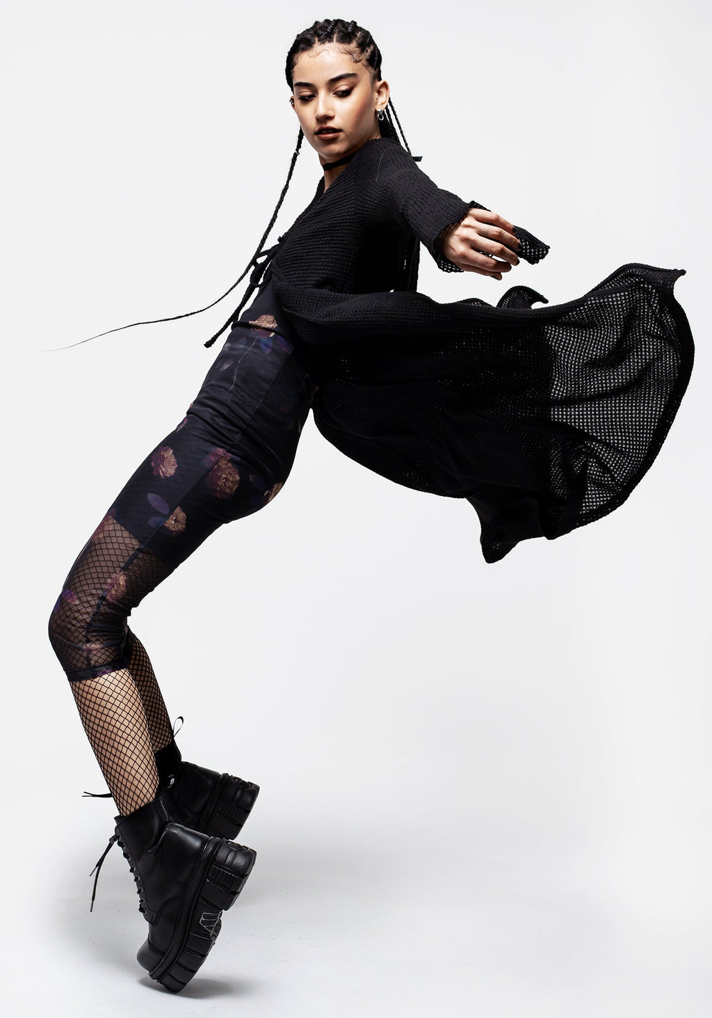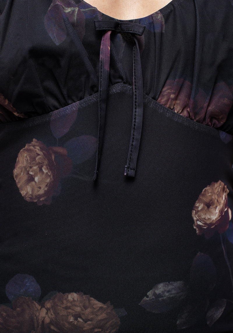 - Black stretch mesh fabrication lined with solid black stretch jersey