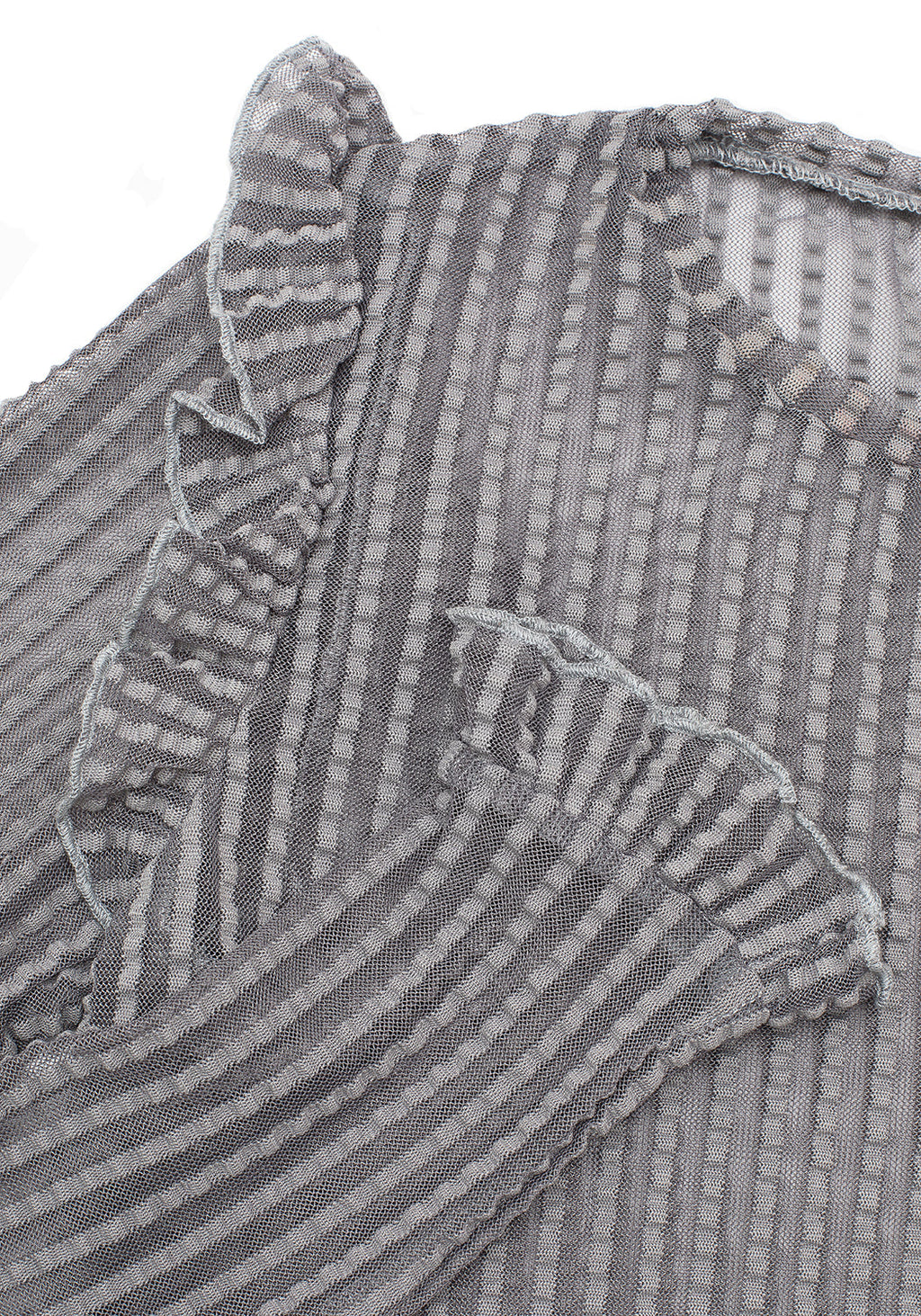 ✞ Grey mesh ruffle top with seersucker stripes