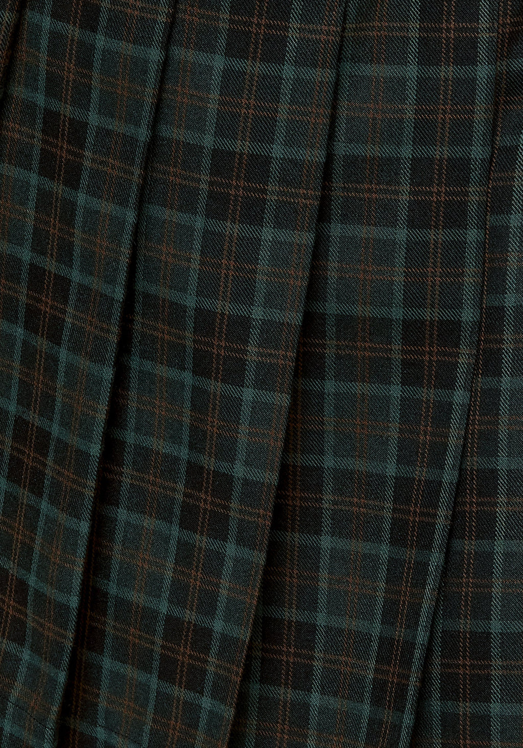 - Mock wrap front secured by oversized safety pin brooch creates irregular front hemline (& pays homage to Celtic style)